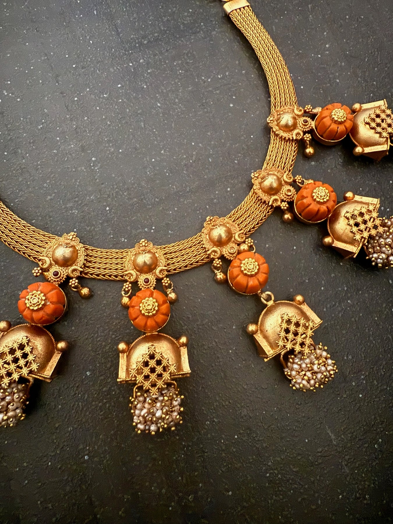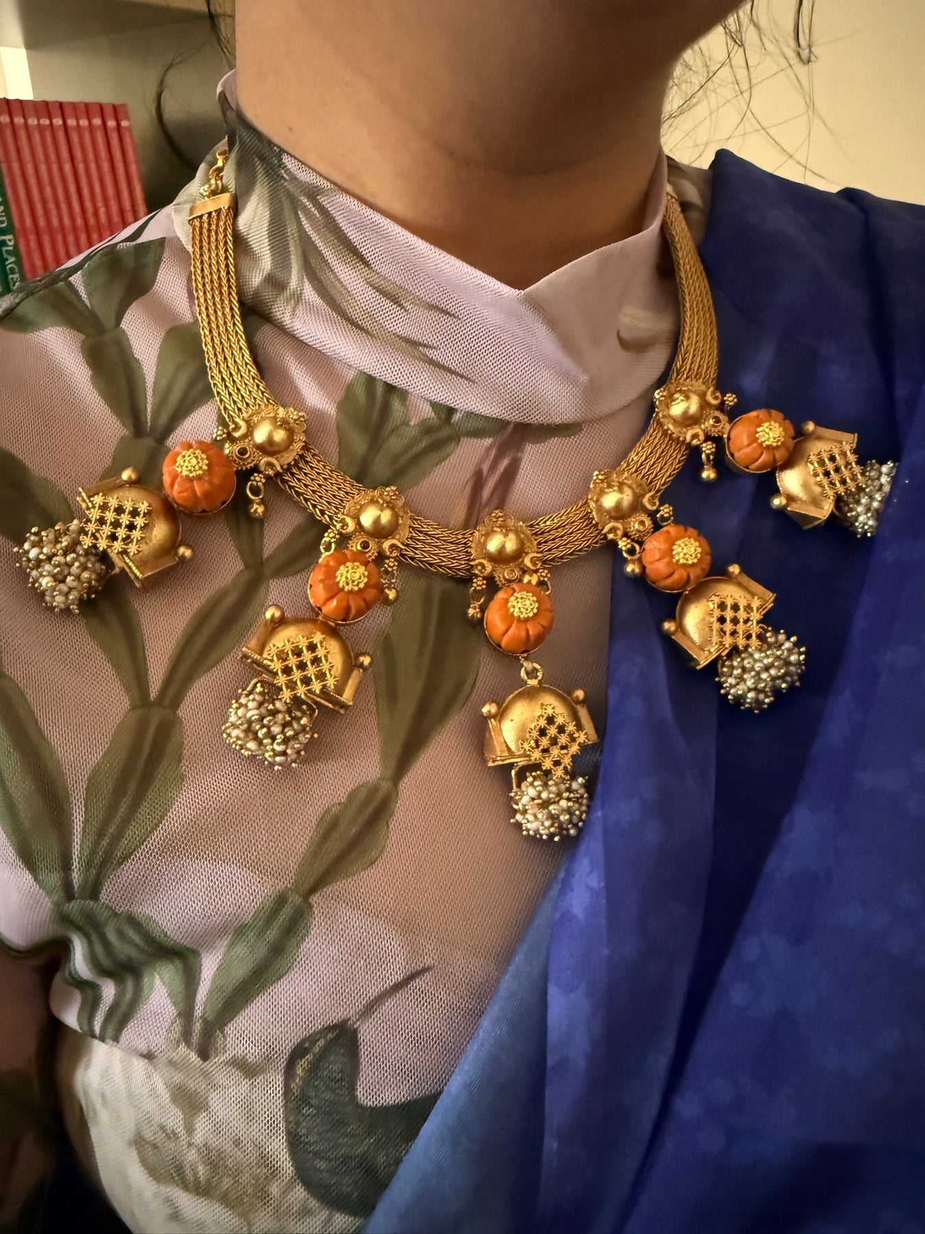 Gemstones: Labradorite, Coral, Pearls, Amethyst with Kundan work