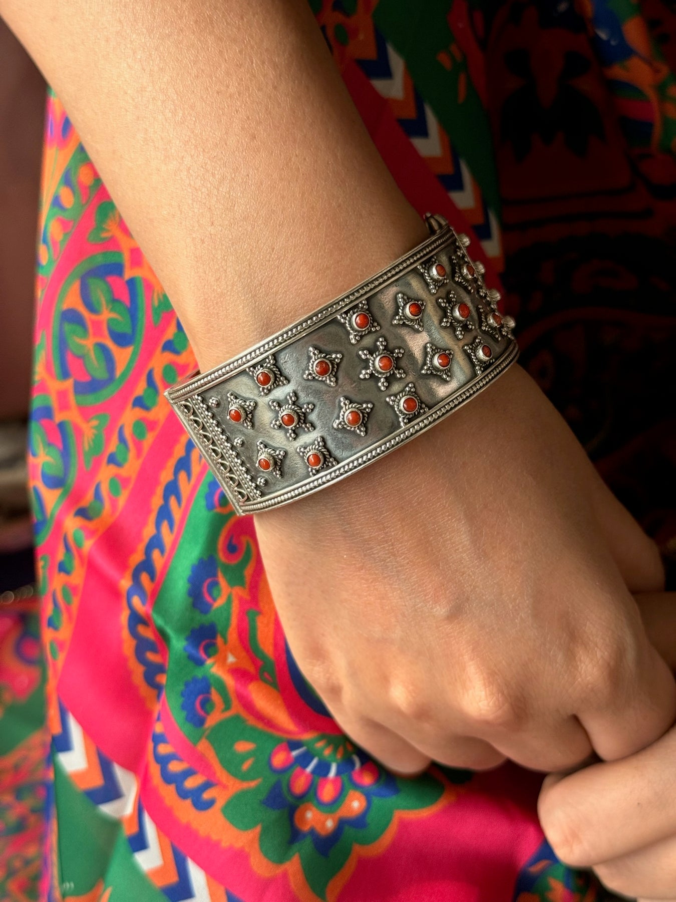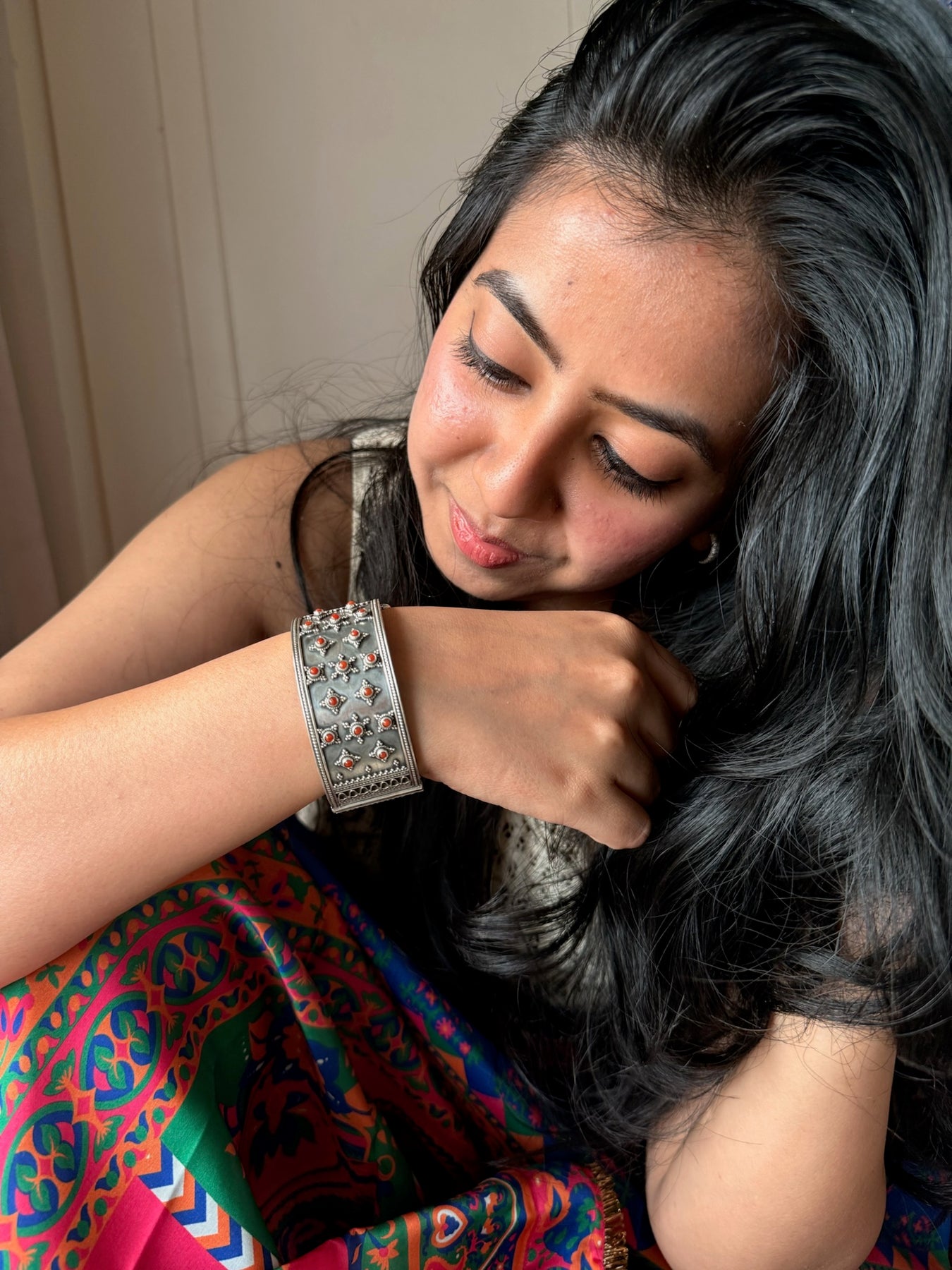 Material: 925 Hallmarked Silver, Natural Ruby Beads, Kundan Work