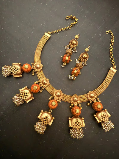 Perfect for festive occasions, weddings, and special celebrations, this handmade SHIVKA necklace set is sure to attract countless compliments and elevate your traditional look beautifully.