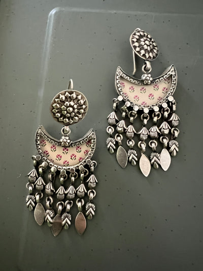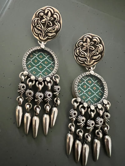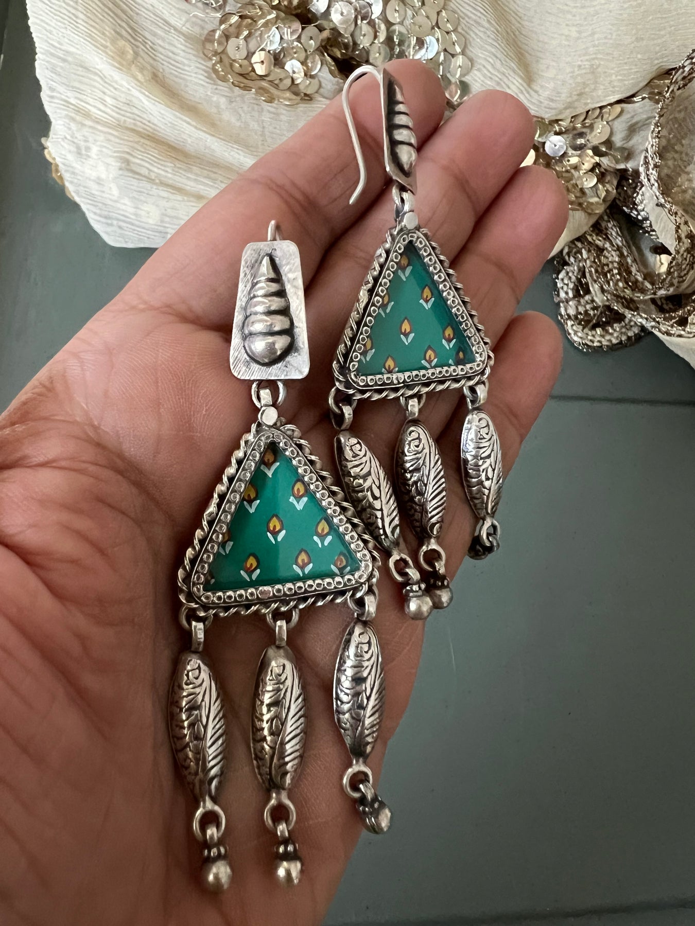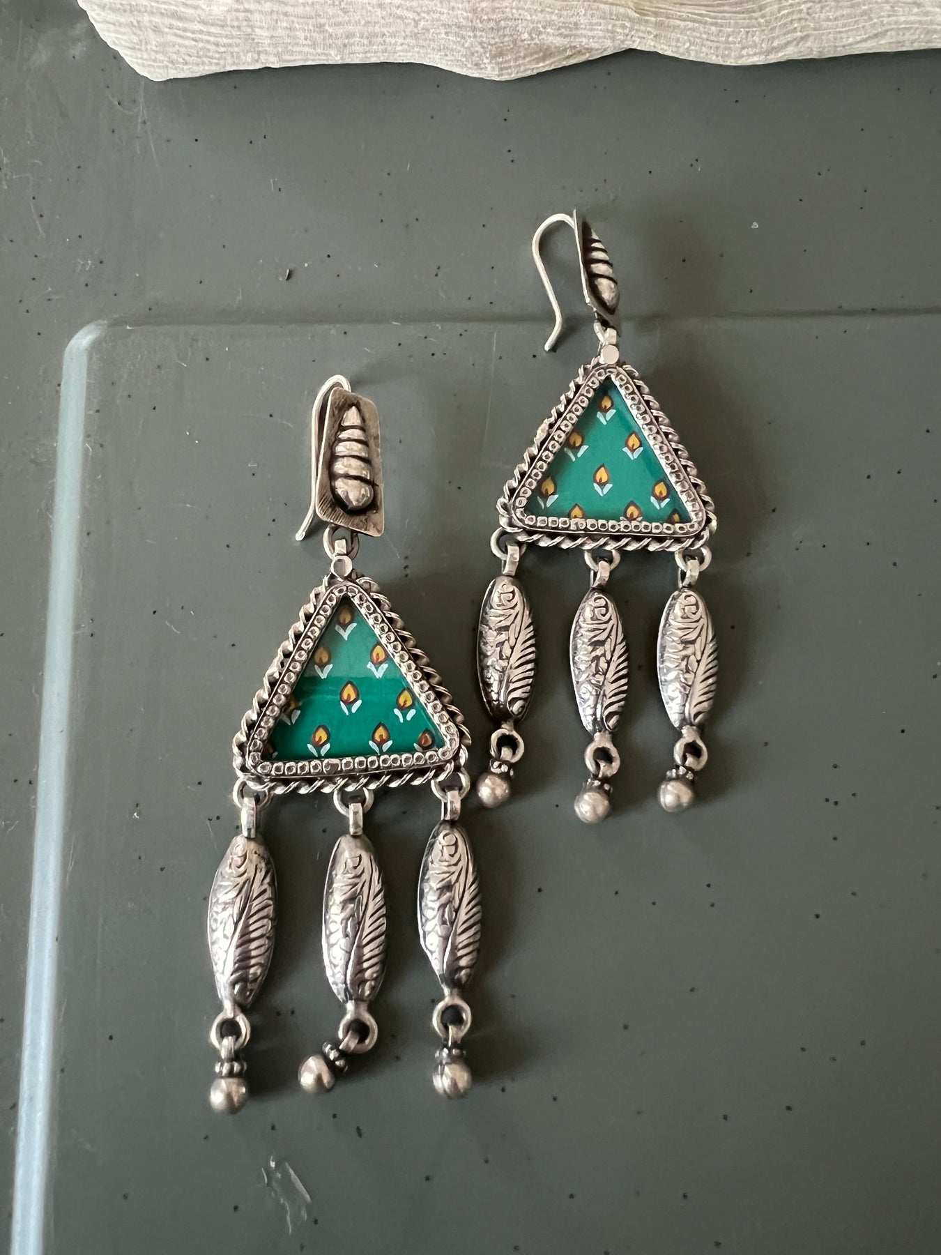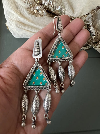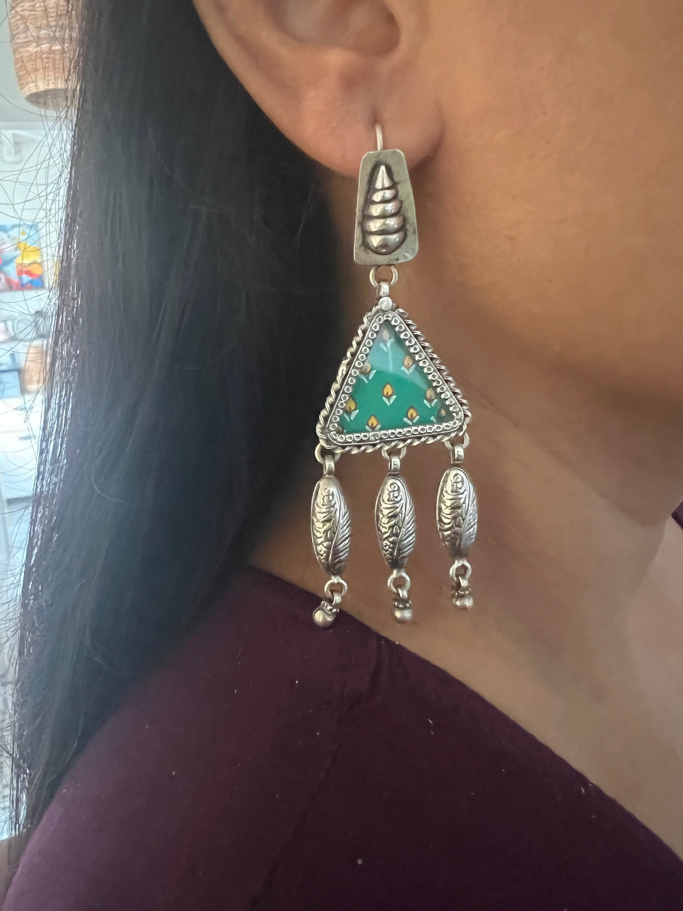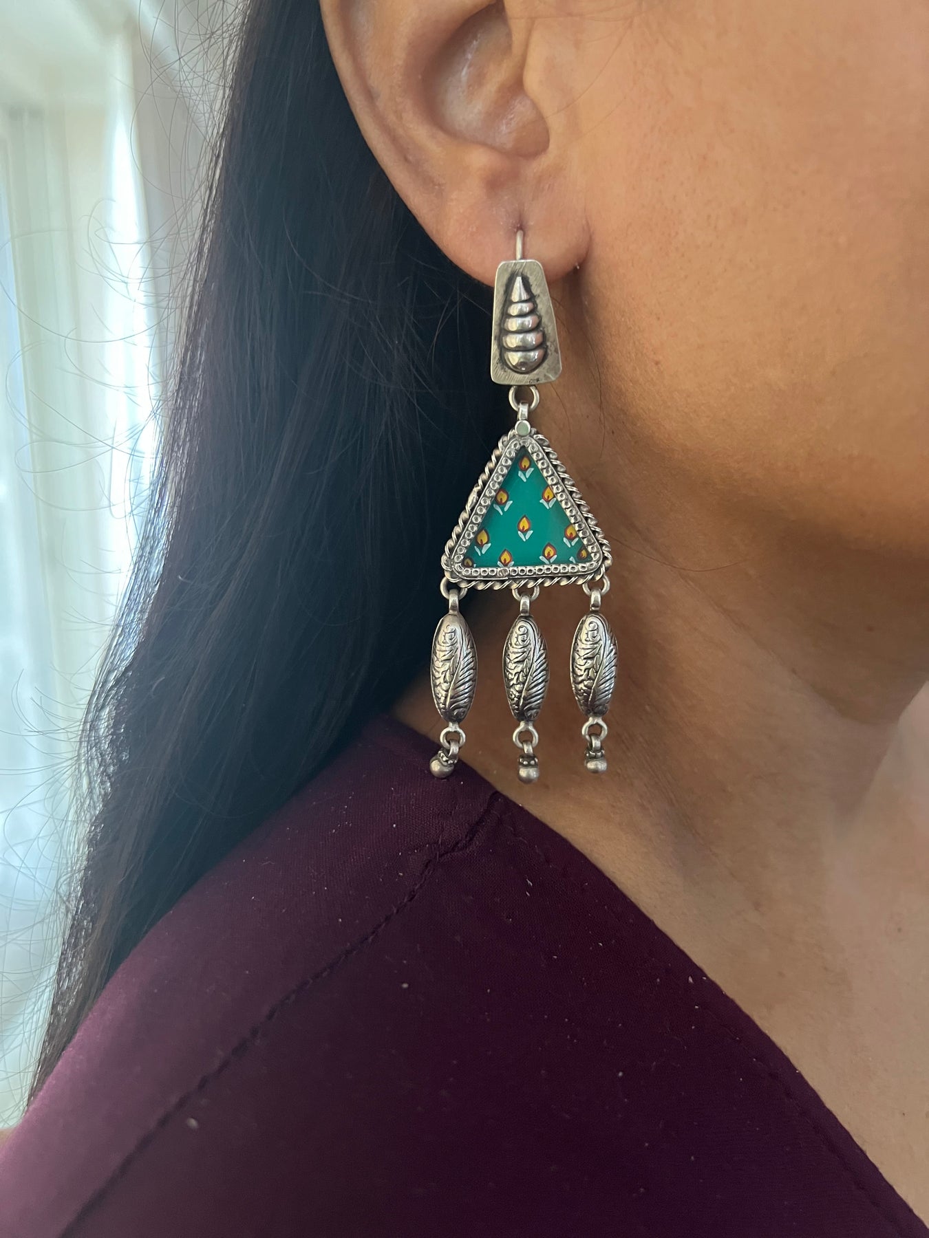 Hand Painted Glass Ghungroo 925 Silver Earrings | SHIVKA