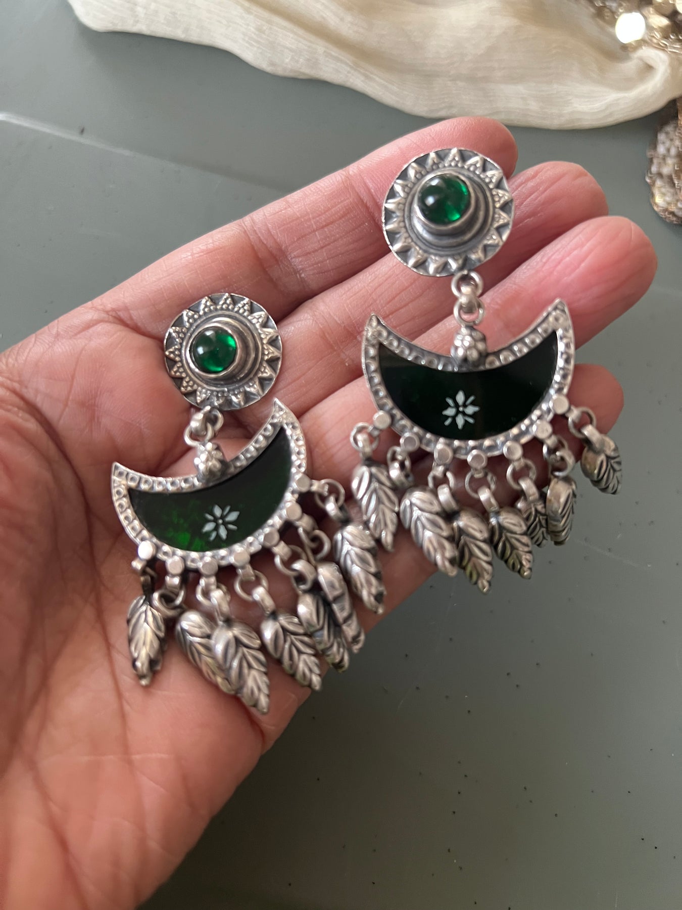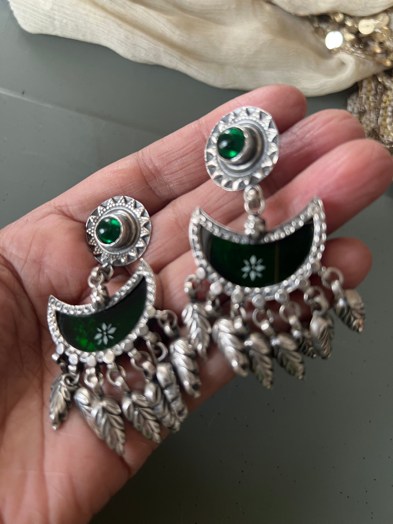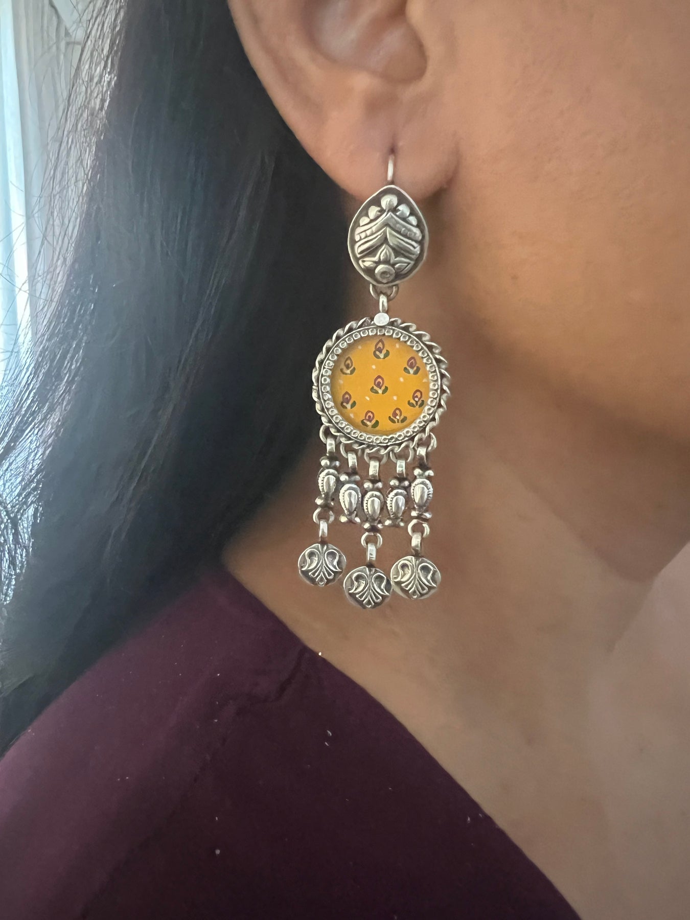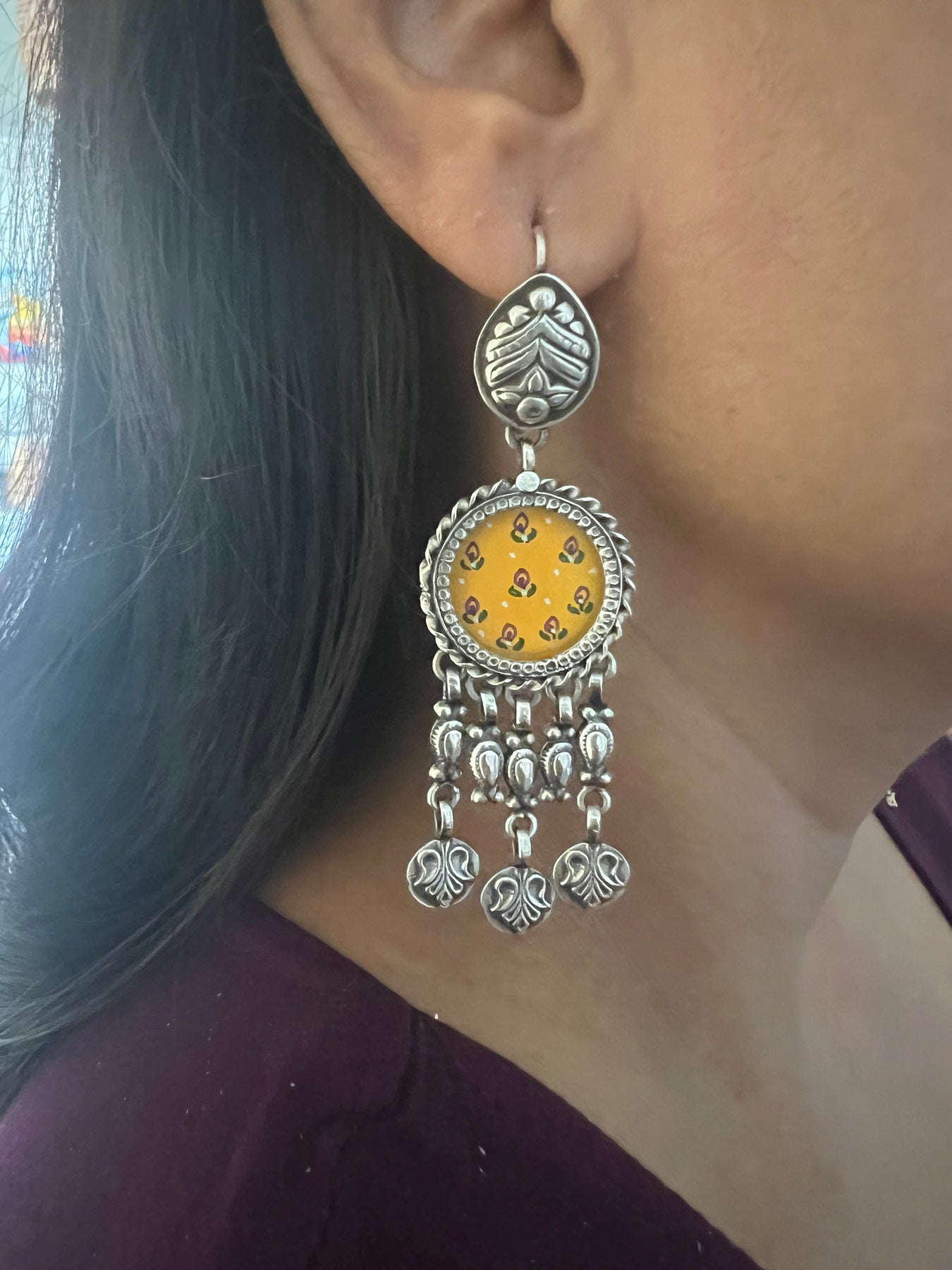 Hand Painted Glass Ghungroo 925 Silver Earrings | SHIVKA