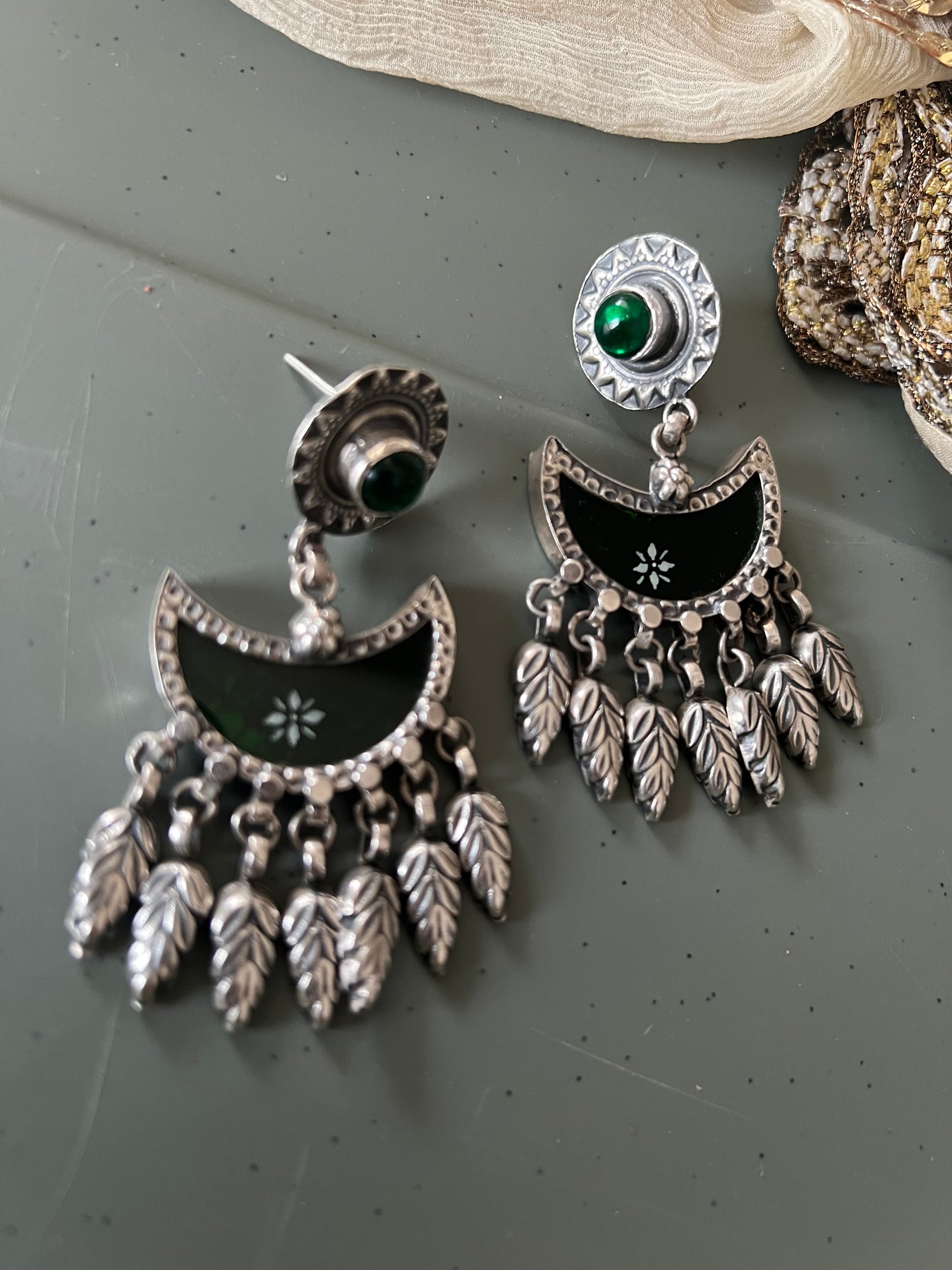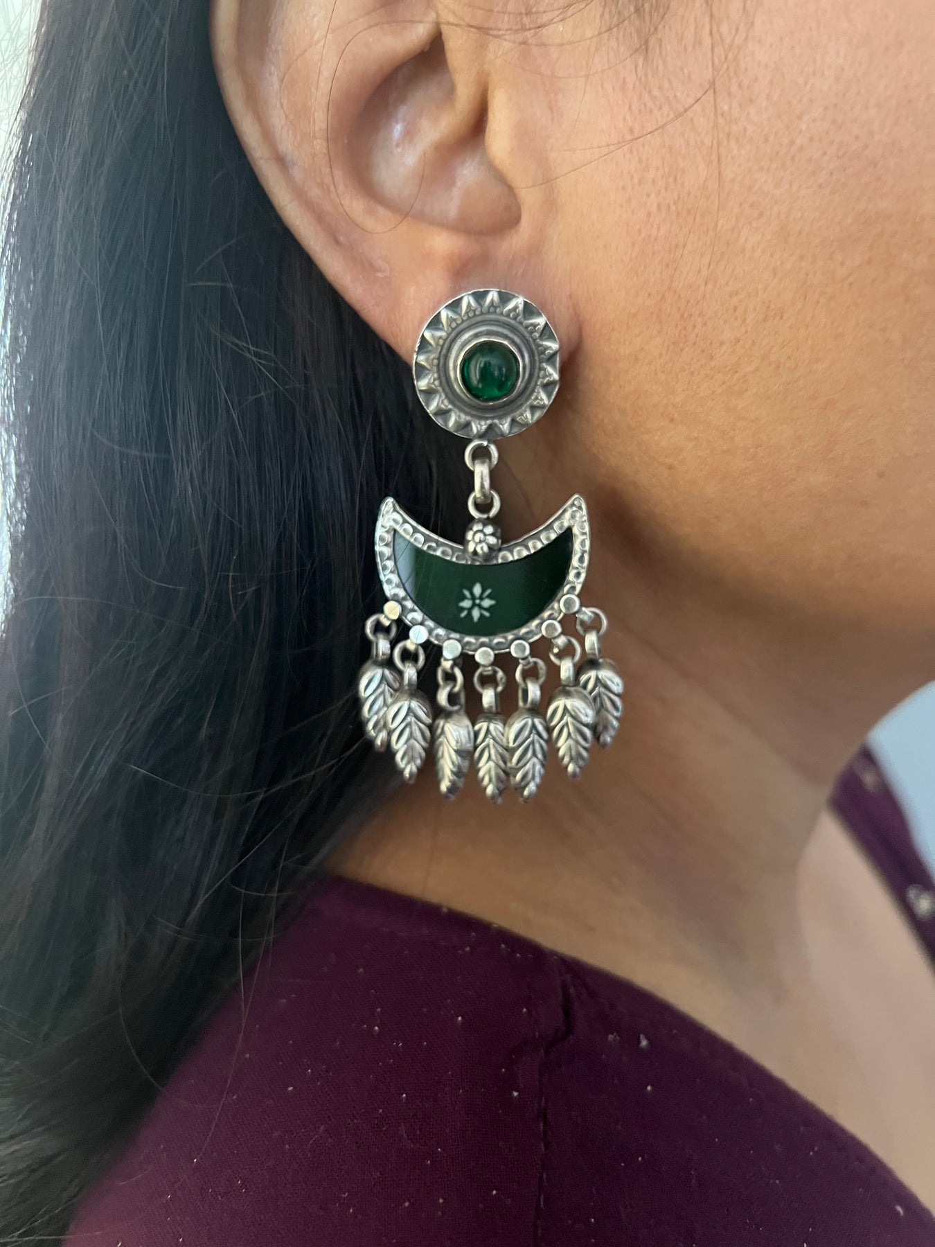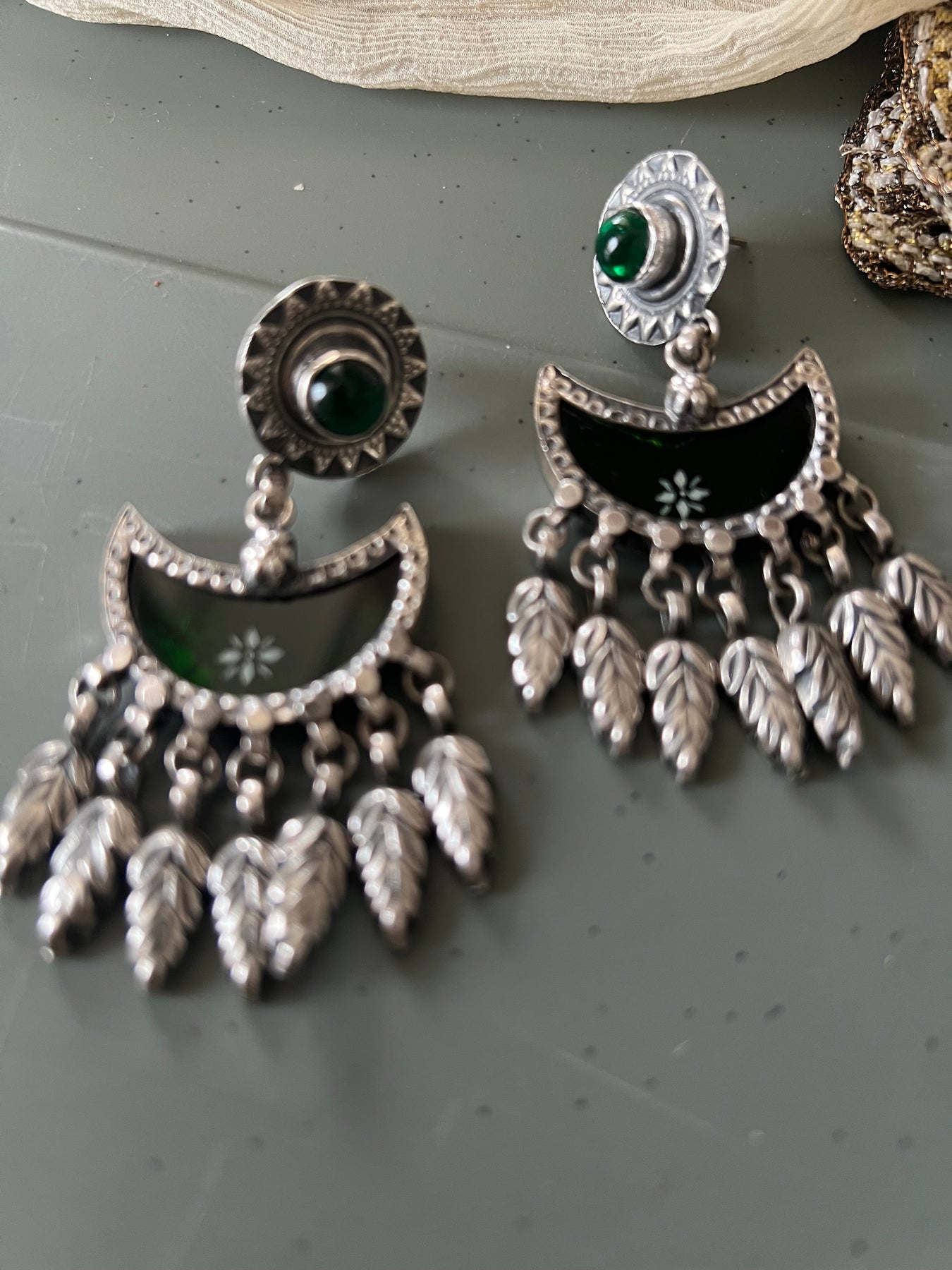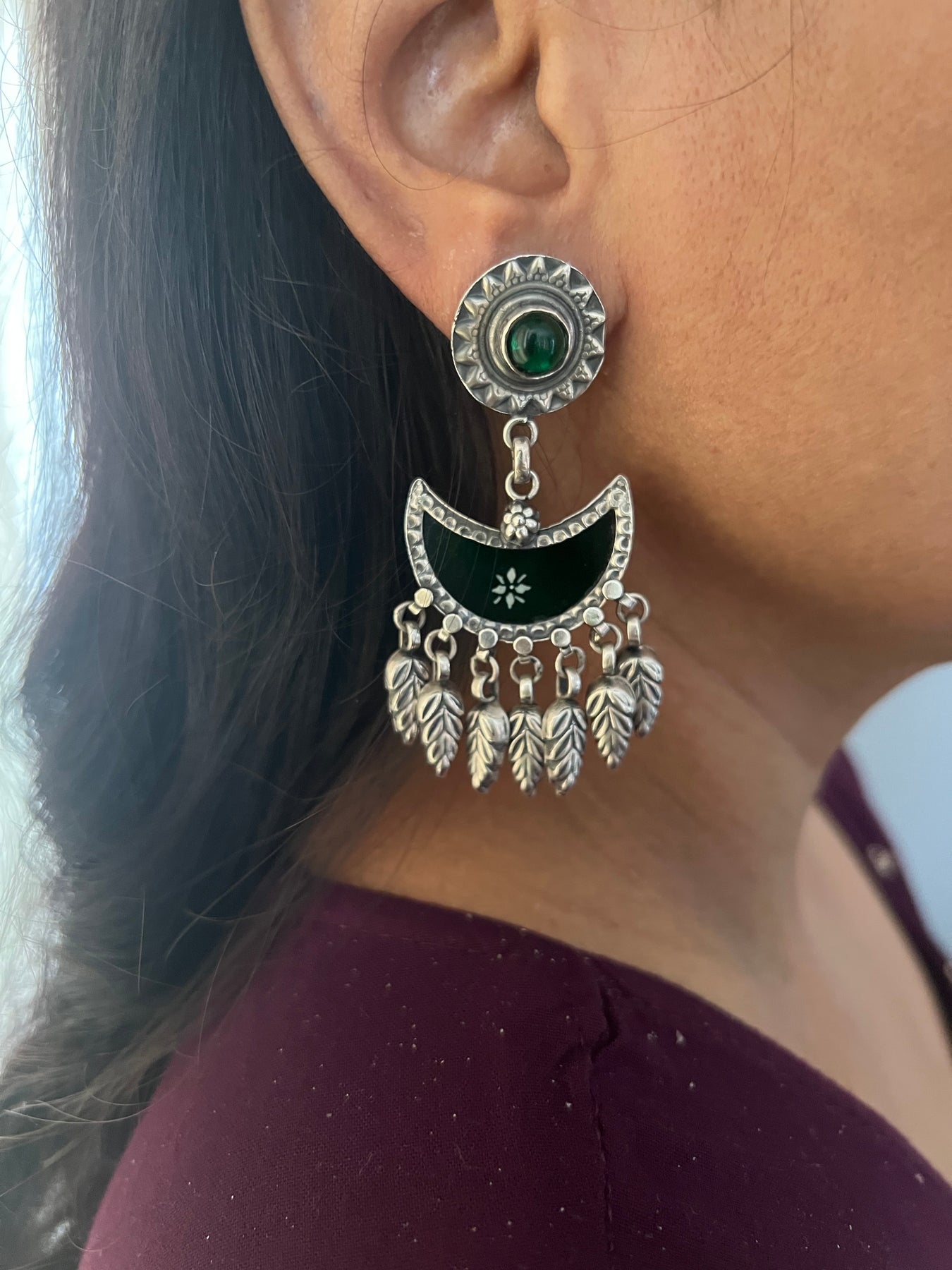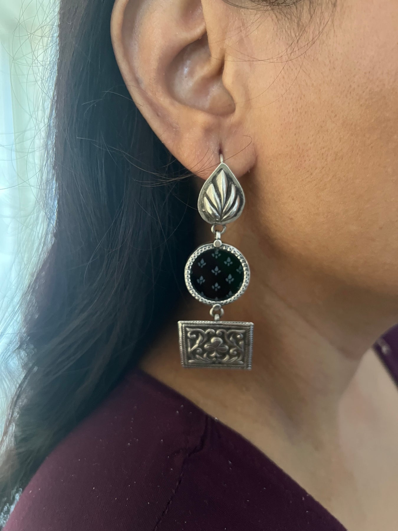 Hand Painted Glass Ghungroo 925 Silver Earrings | SHIVKA