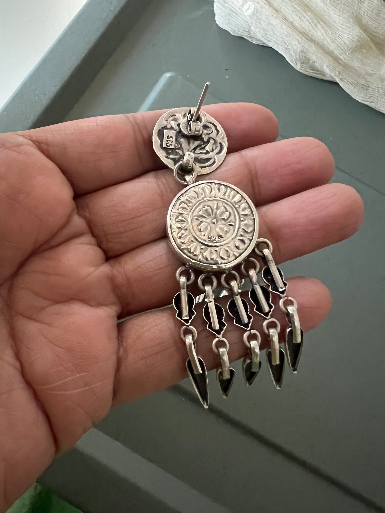 Handcrafted by expert Indian artisans exclusively for SHIVKA, these 925 silver earrings are made with natural stones and finished in high-quality polish for a premium, lasting shine.