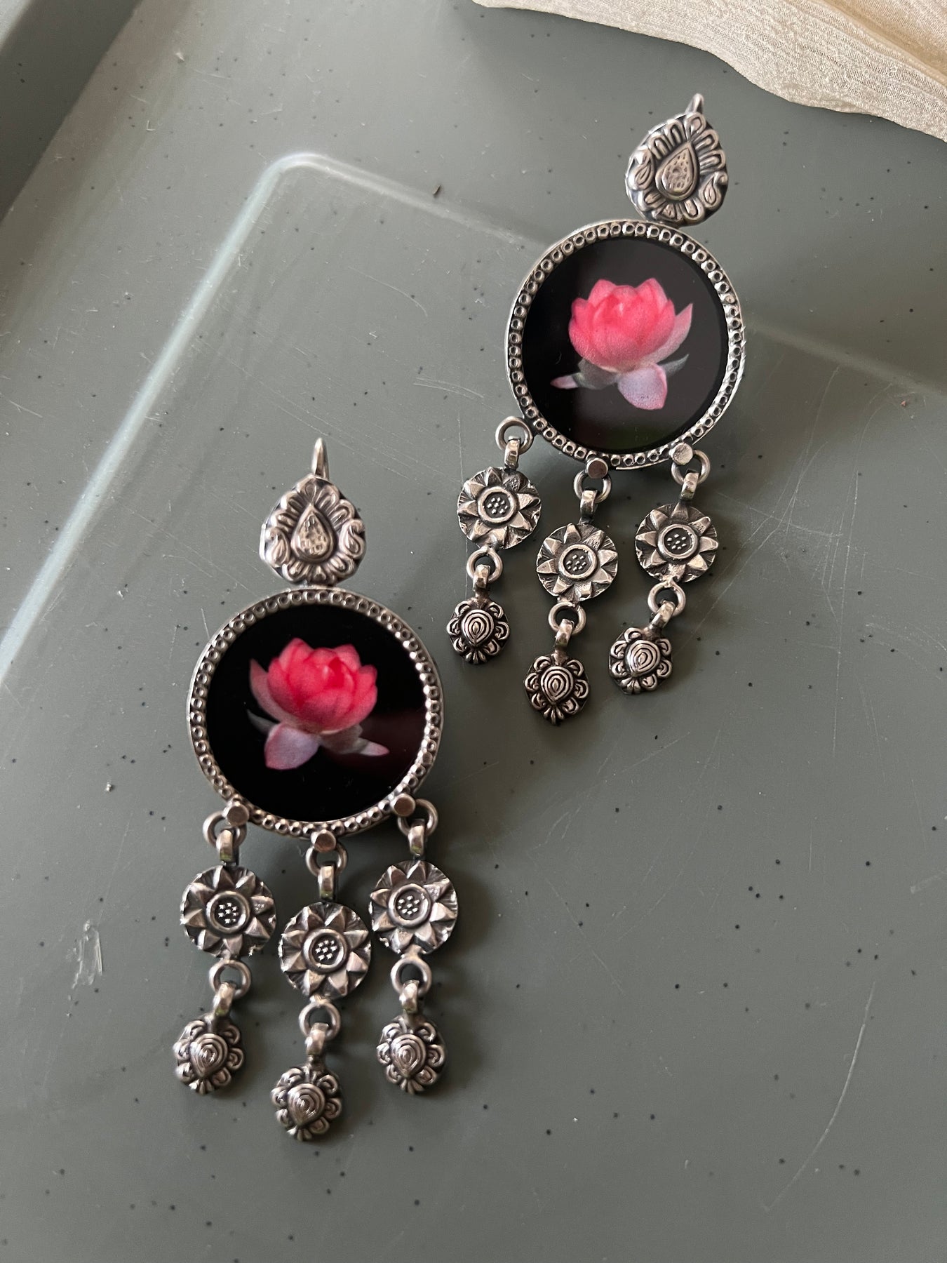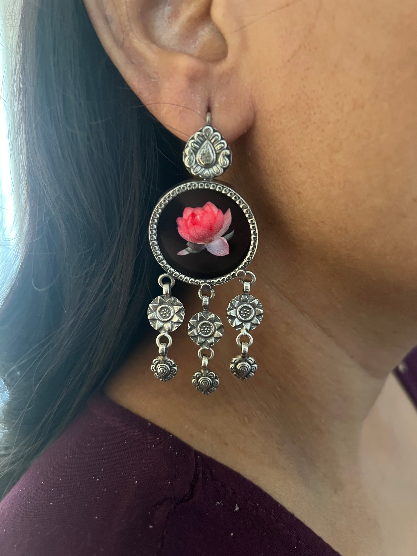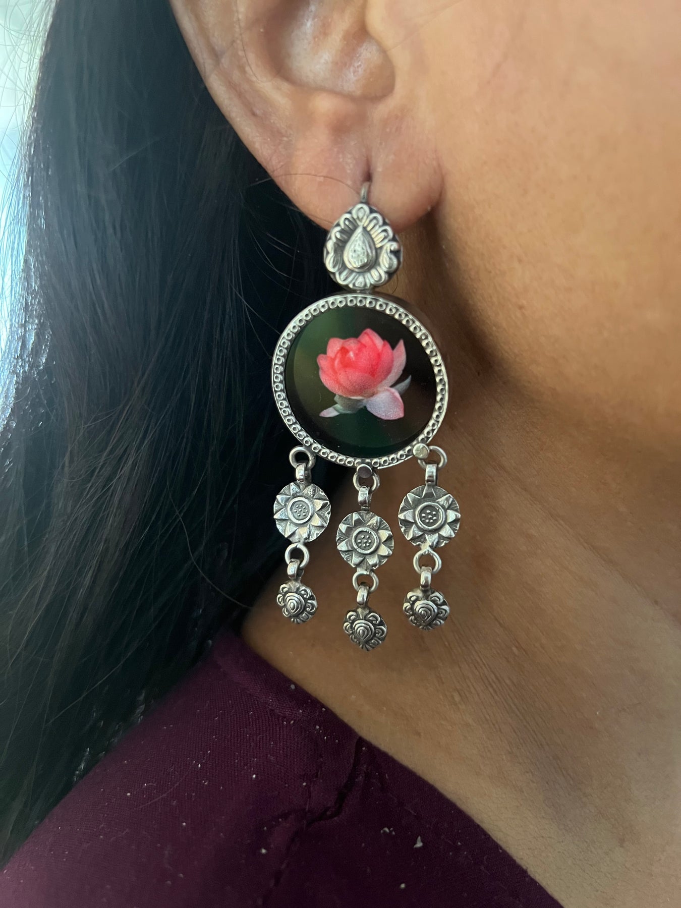Hand Painted Flower Glass 925 Silver Earrings | SHIVKA