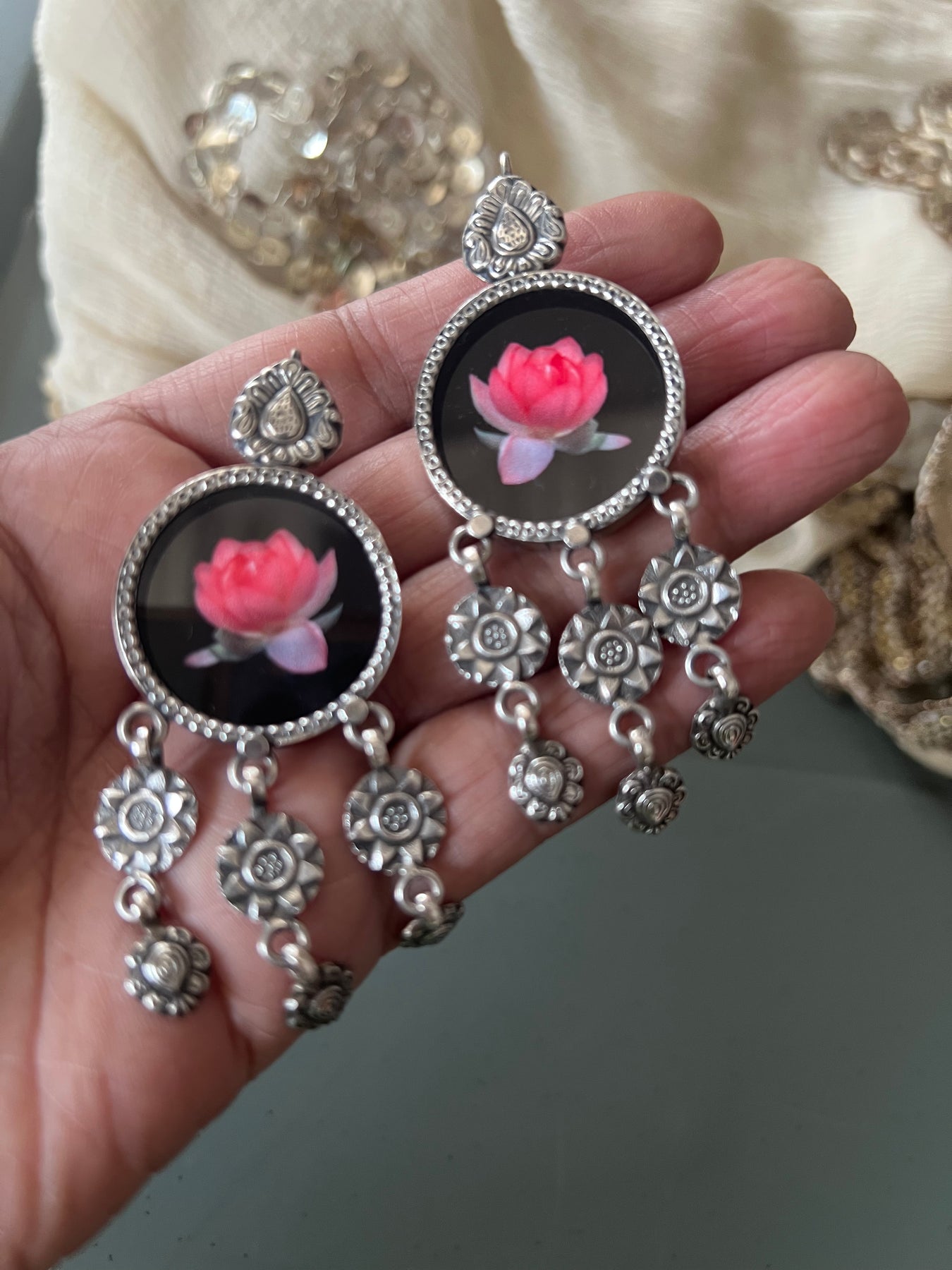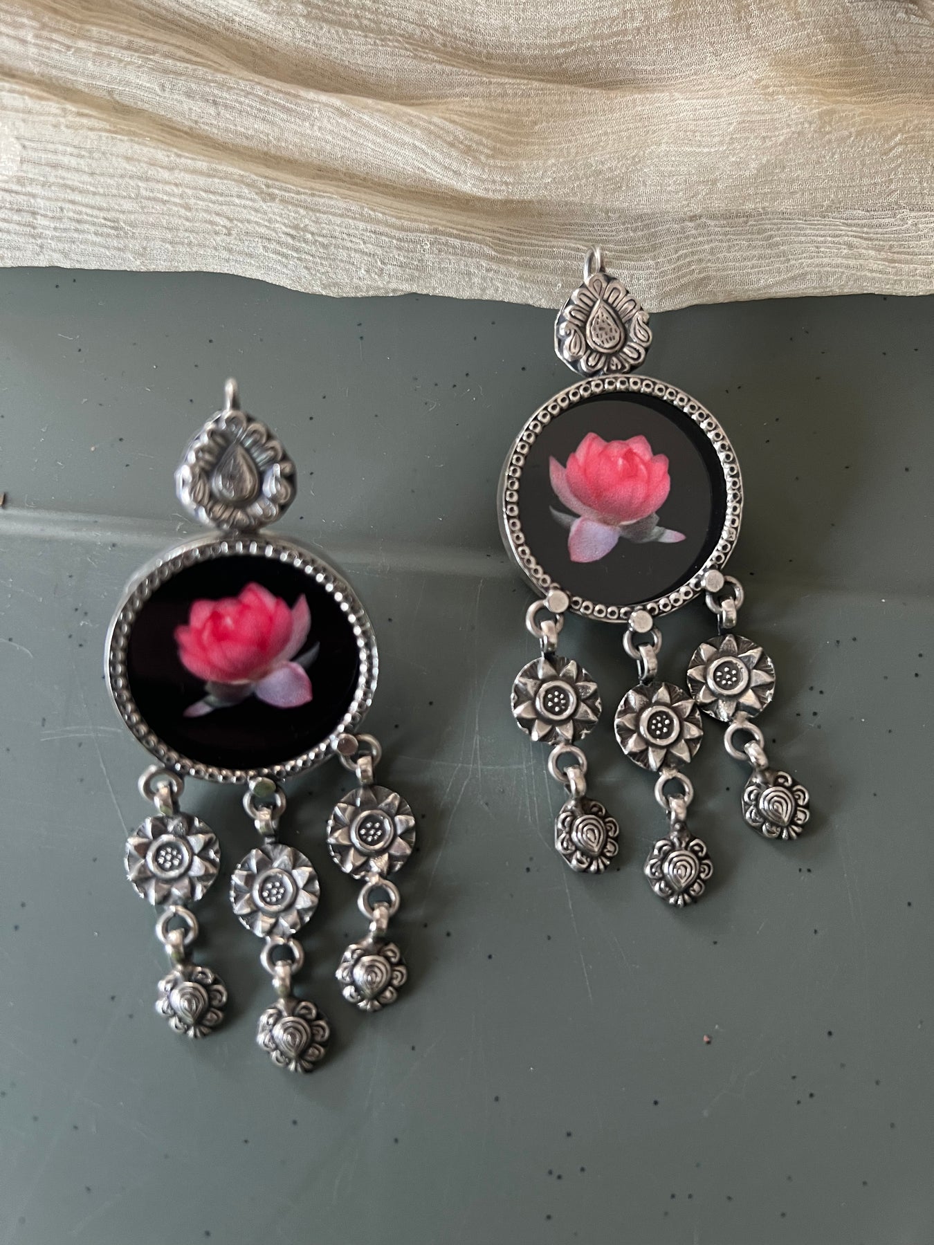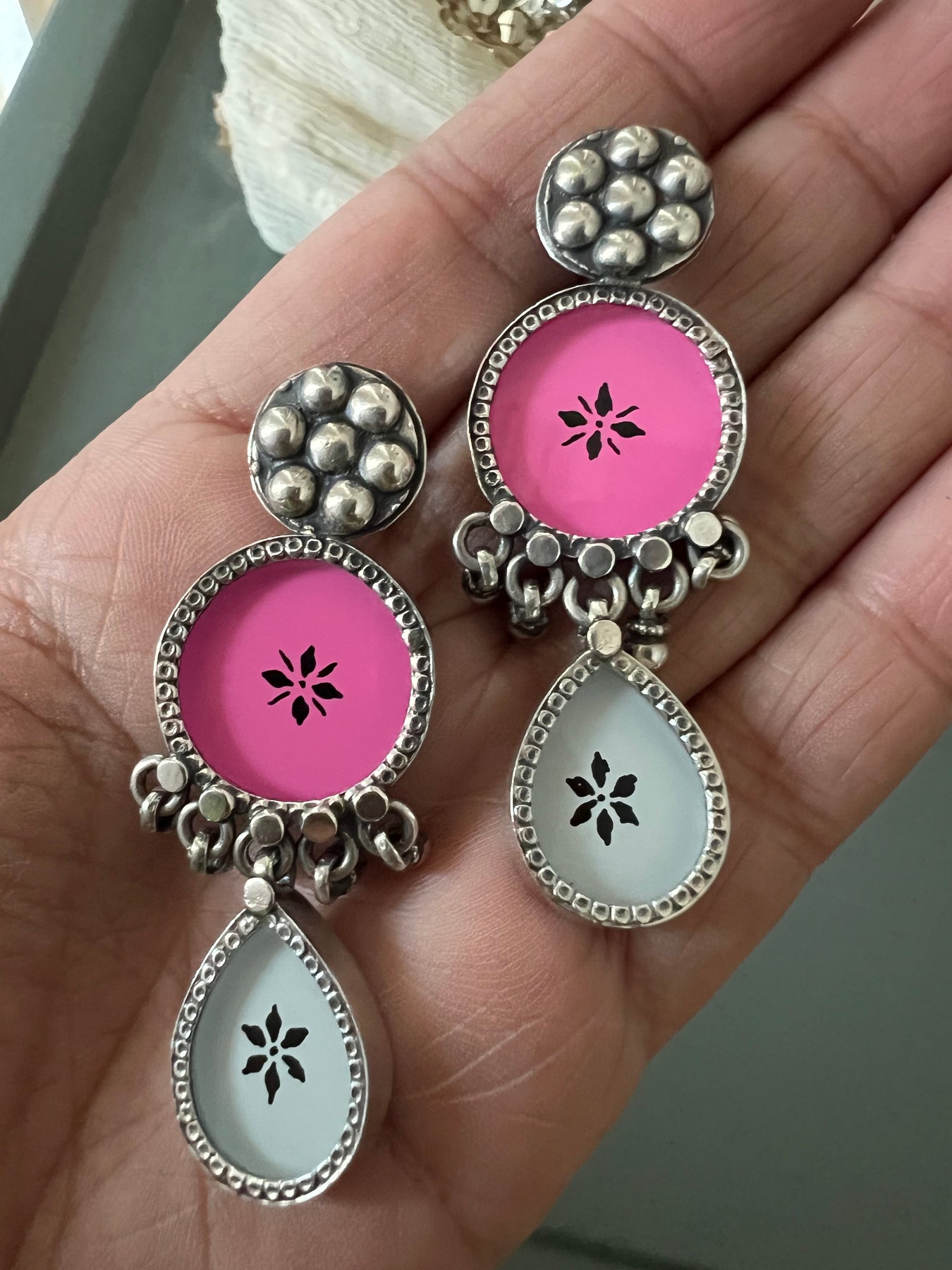 Hand Painted Flower Glass 925 Silver Earrings | SHIVKA