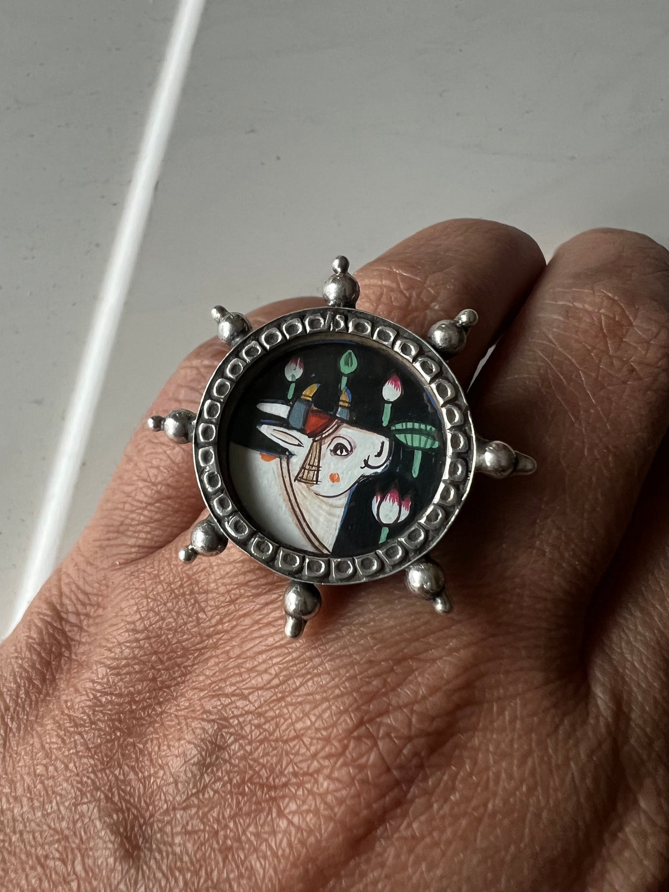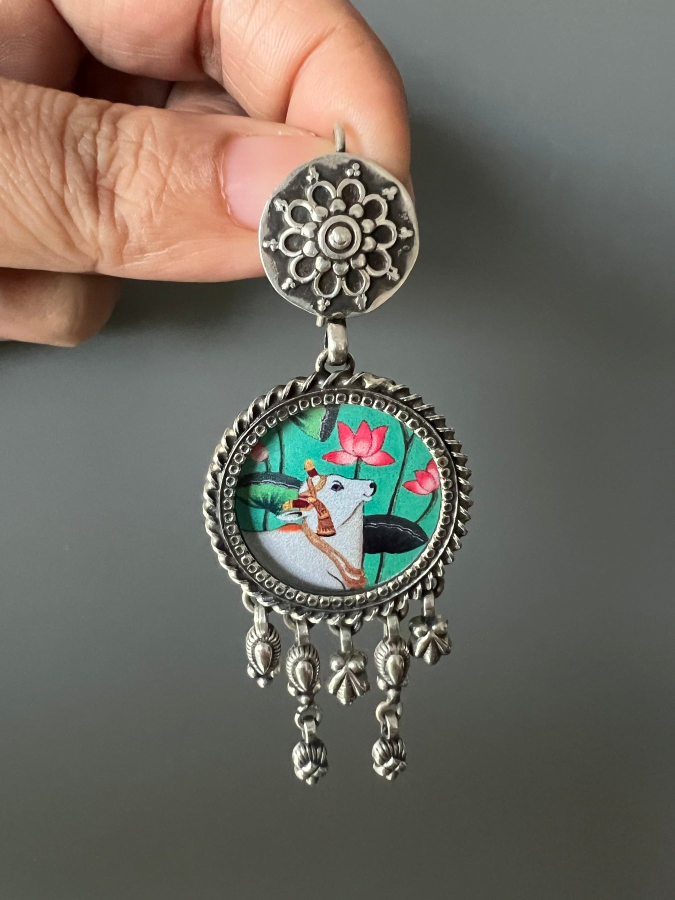 Hand Painted Glass Holy Cow 925 Silver Earrings | SHIVKA