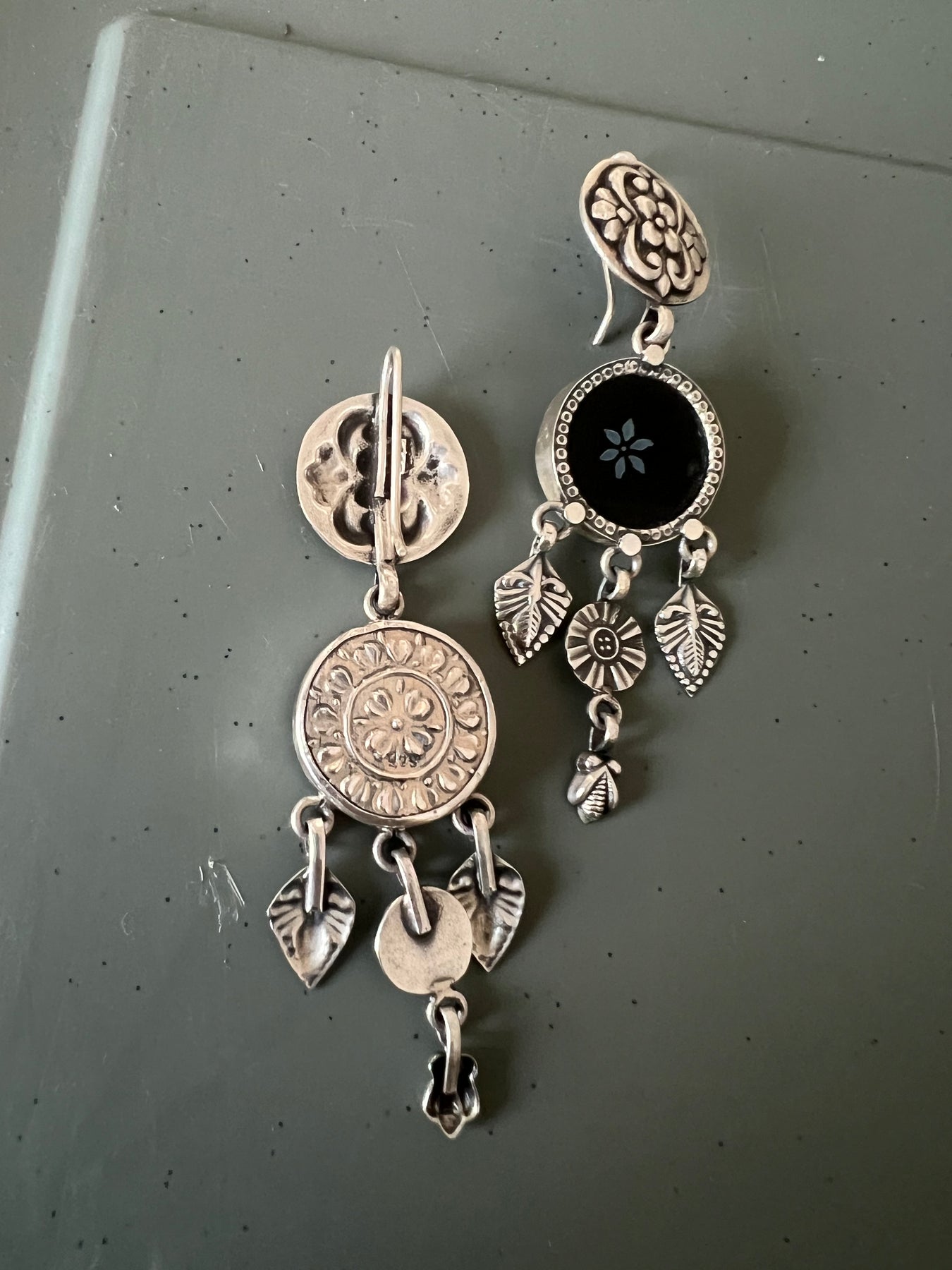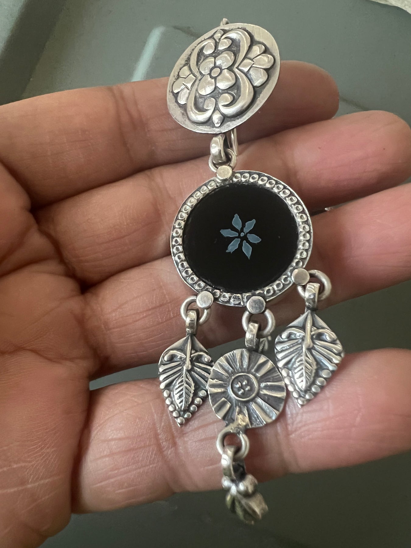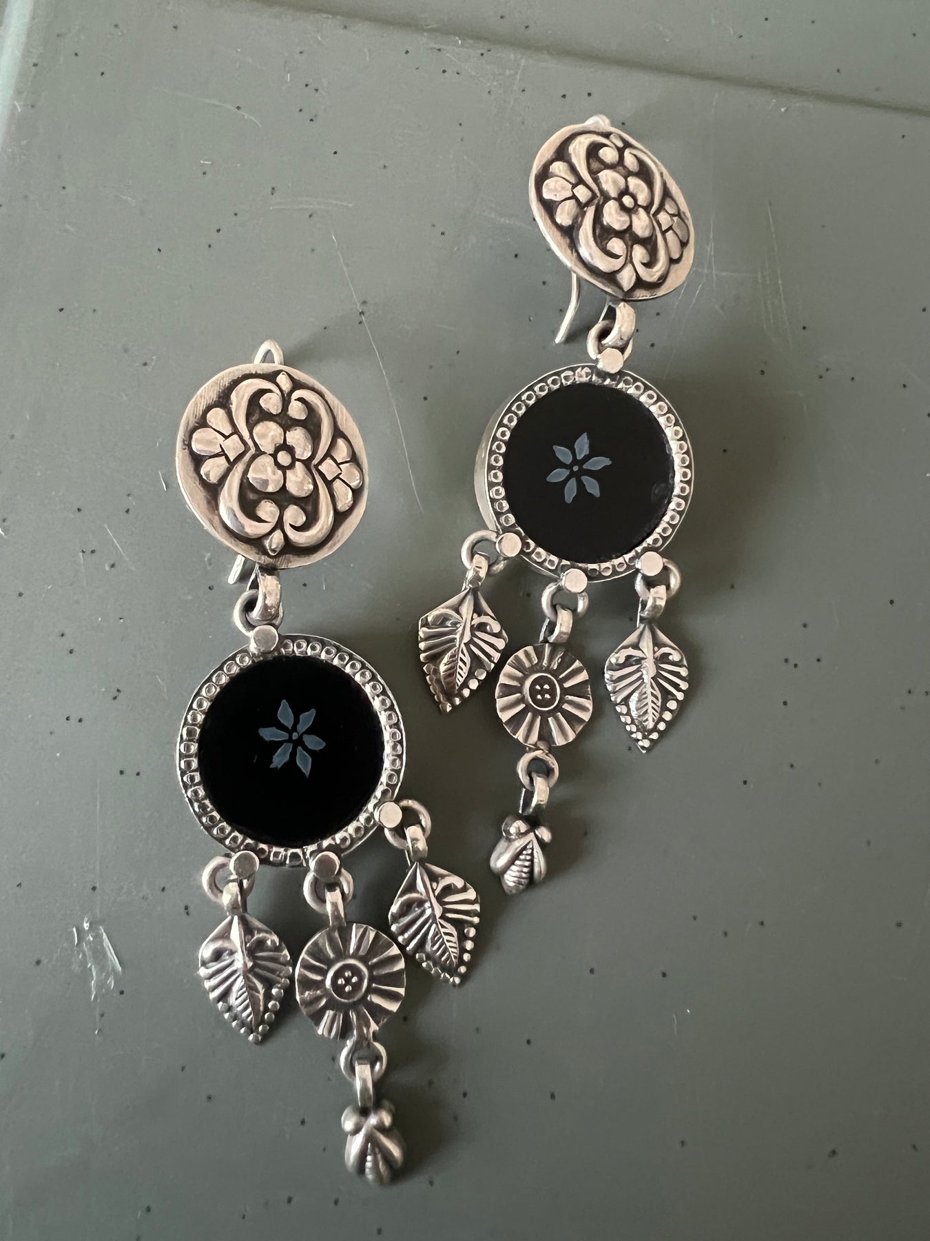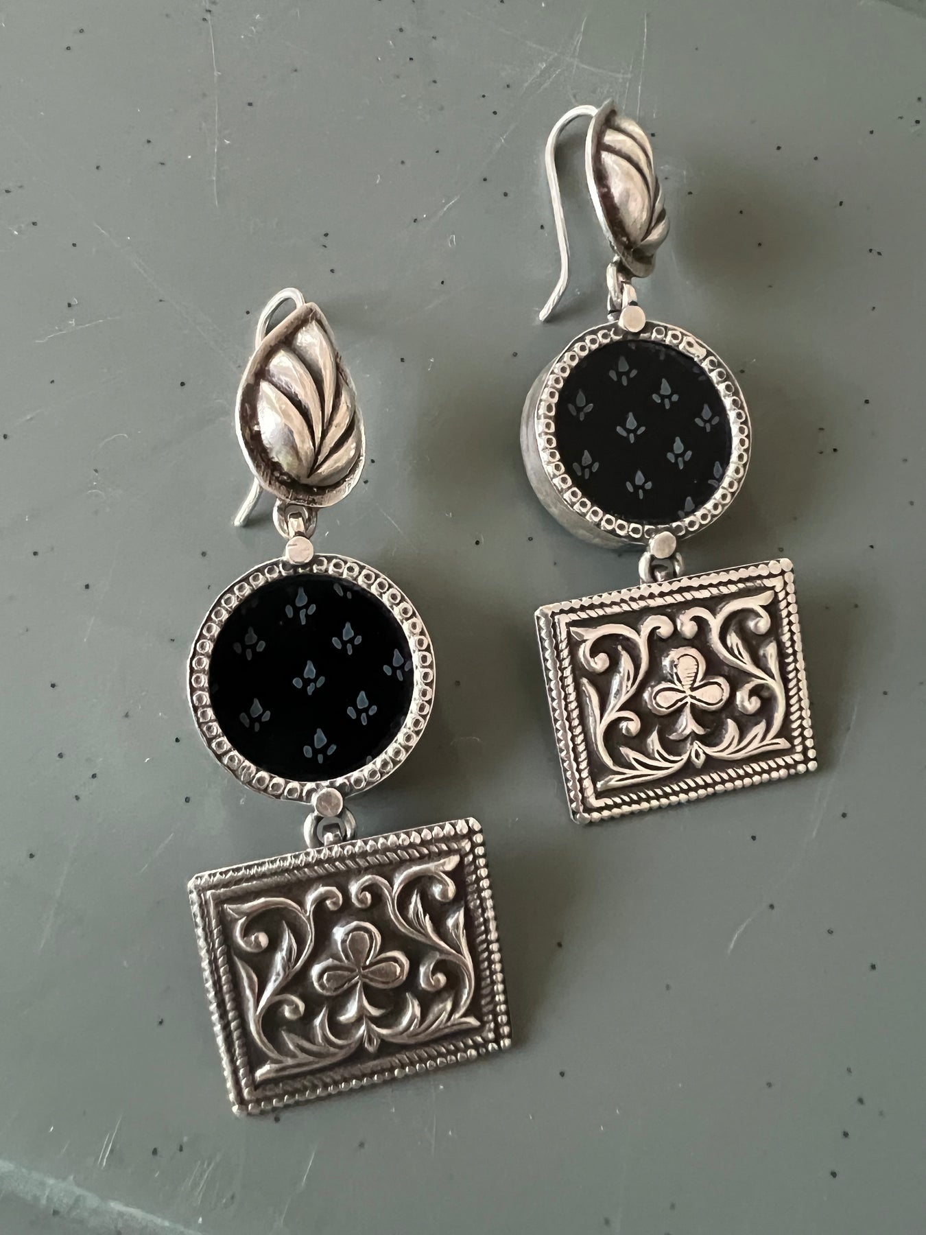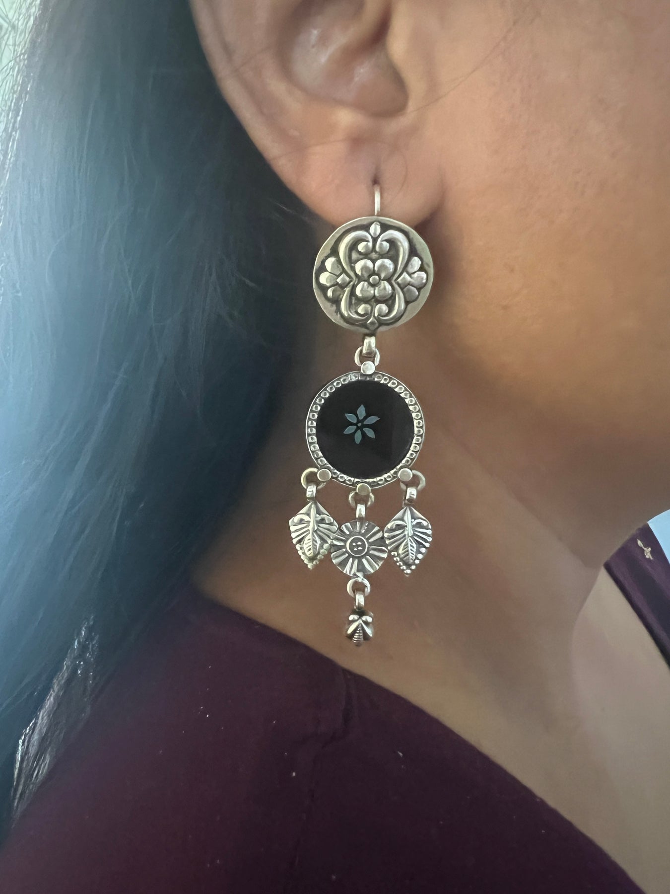 Each earring features sleek black art glass framed in pure 925 sterling silver, showcasing timeless elegance with a modern twist. Meticulously handmade by skilled Indian artisans for SHIVKA.