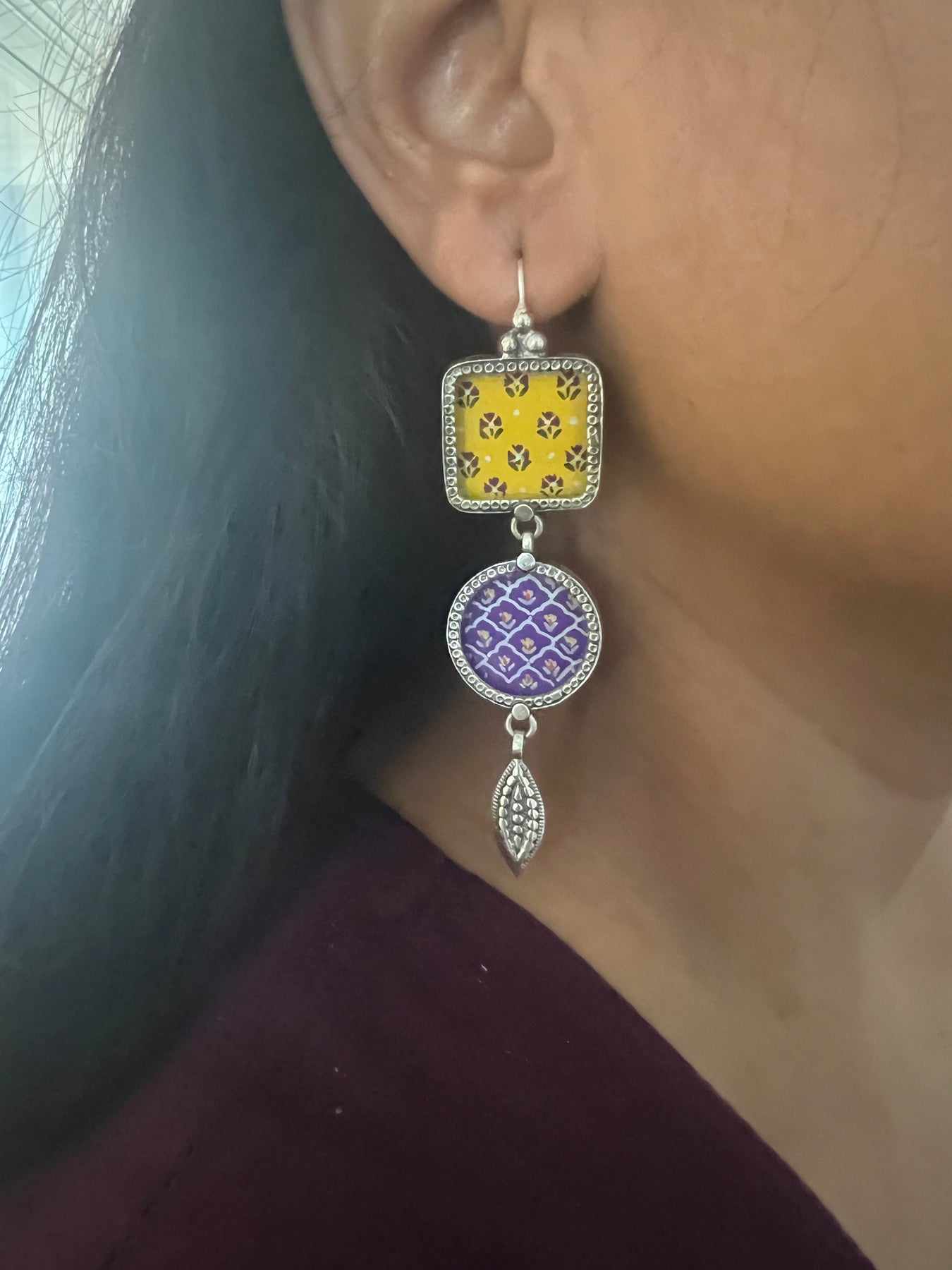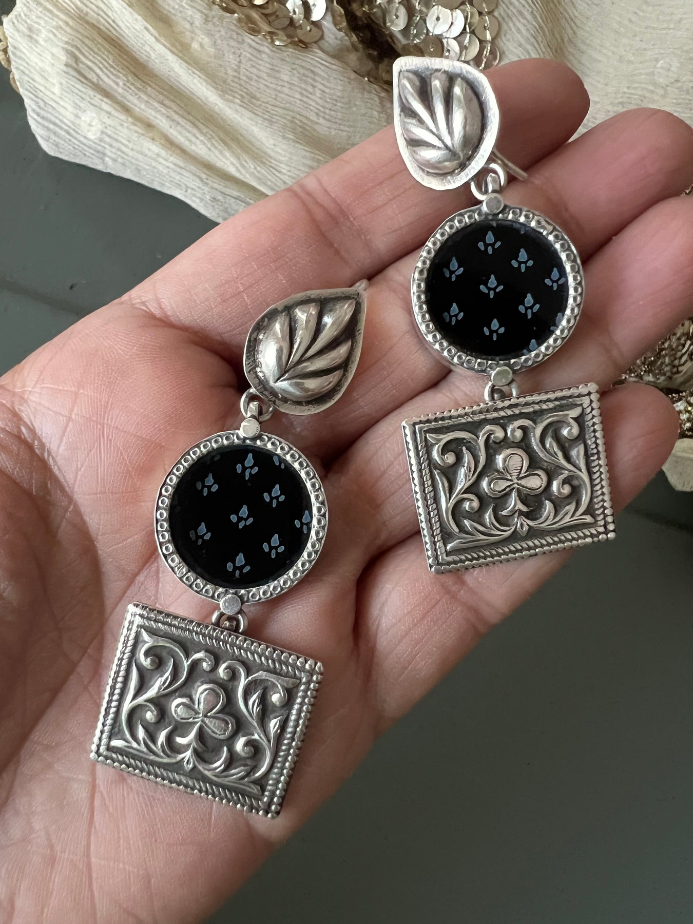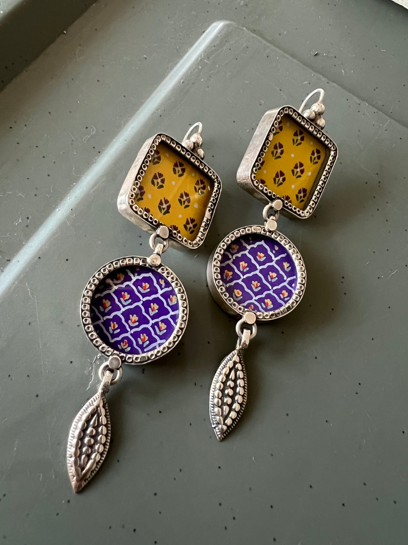 Hand Painted Glass 925 Silver Earrings | SHIVKA