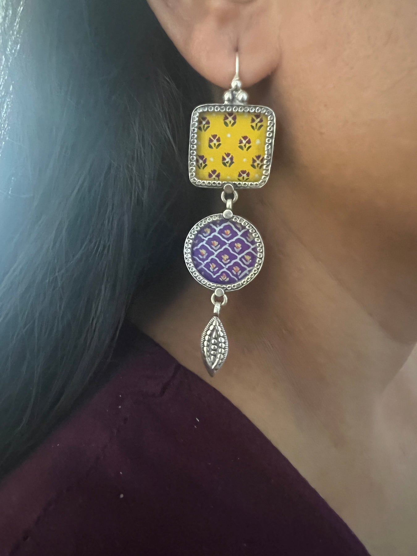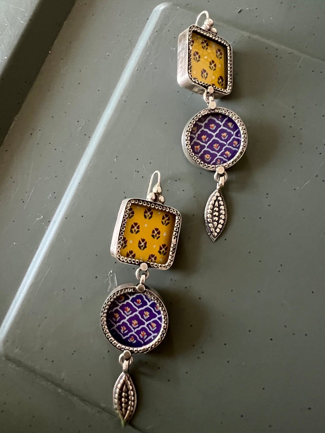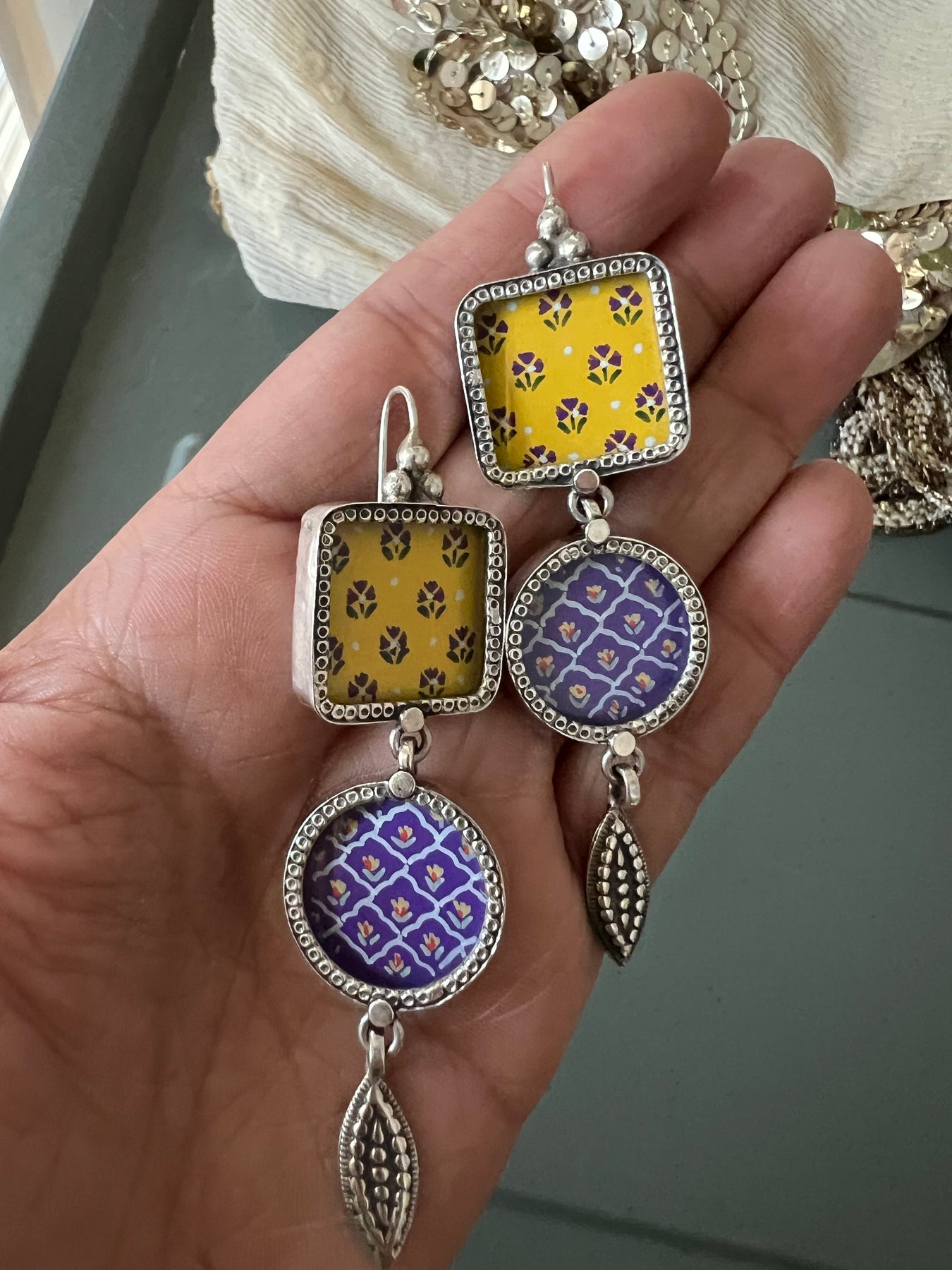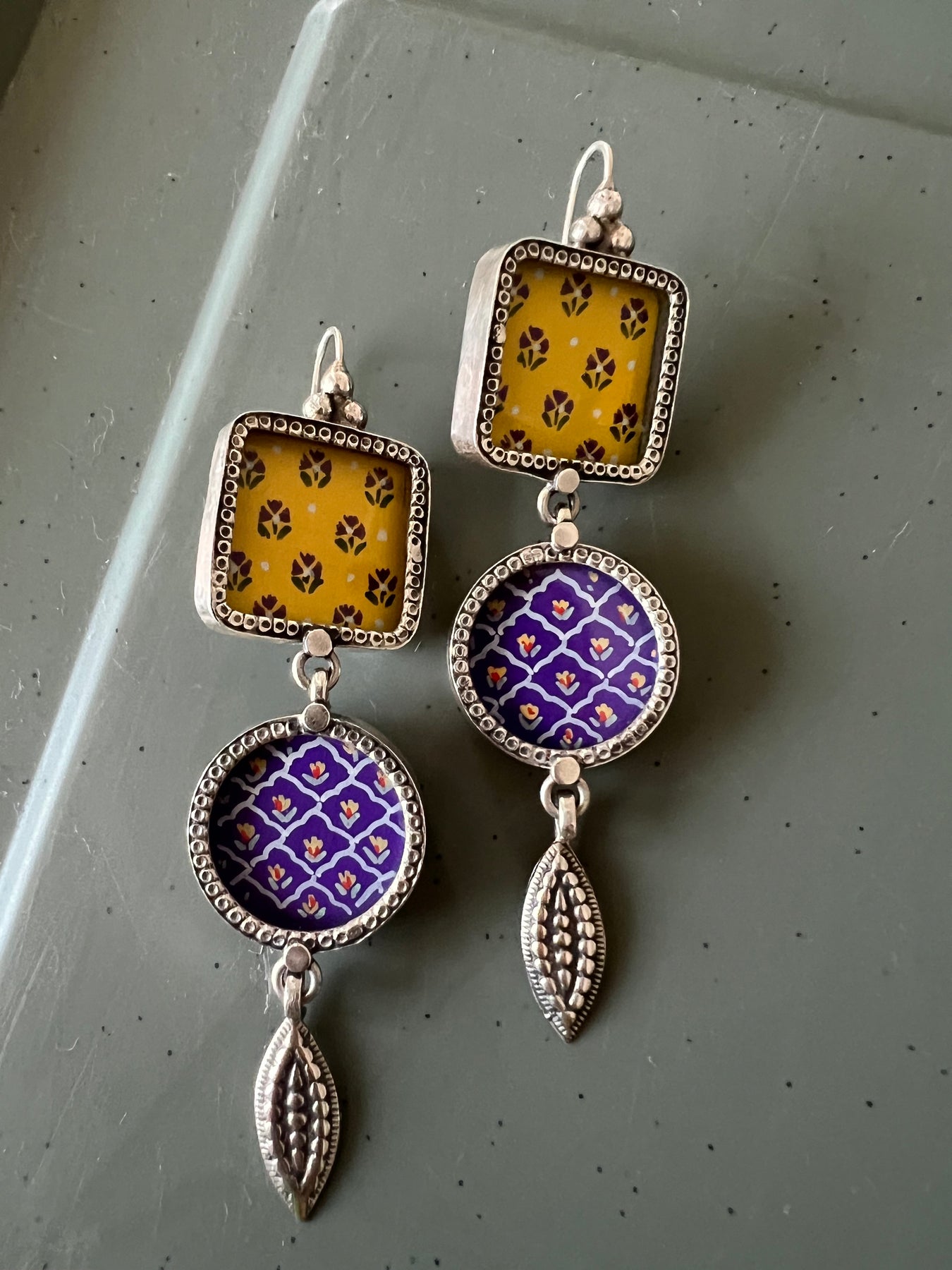 Hand Painted Glass 925 Silver Earrings | SHIVKA
