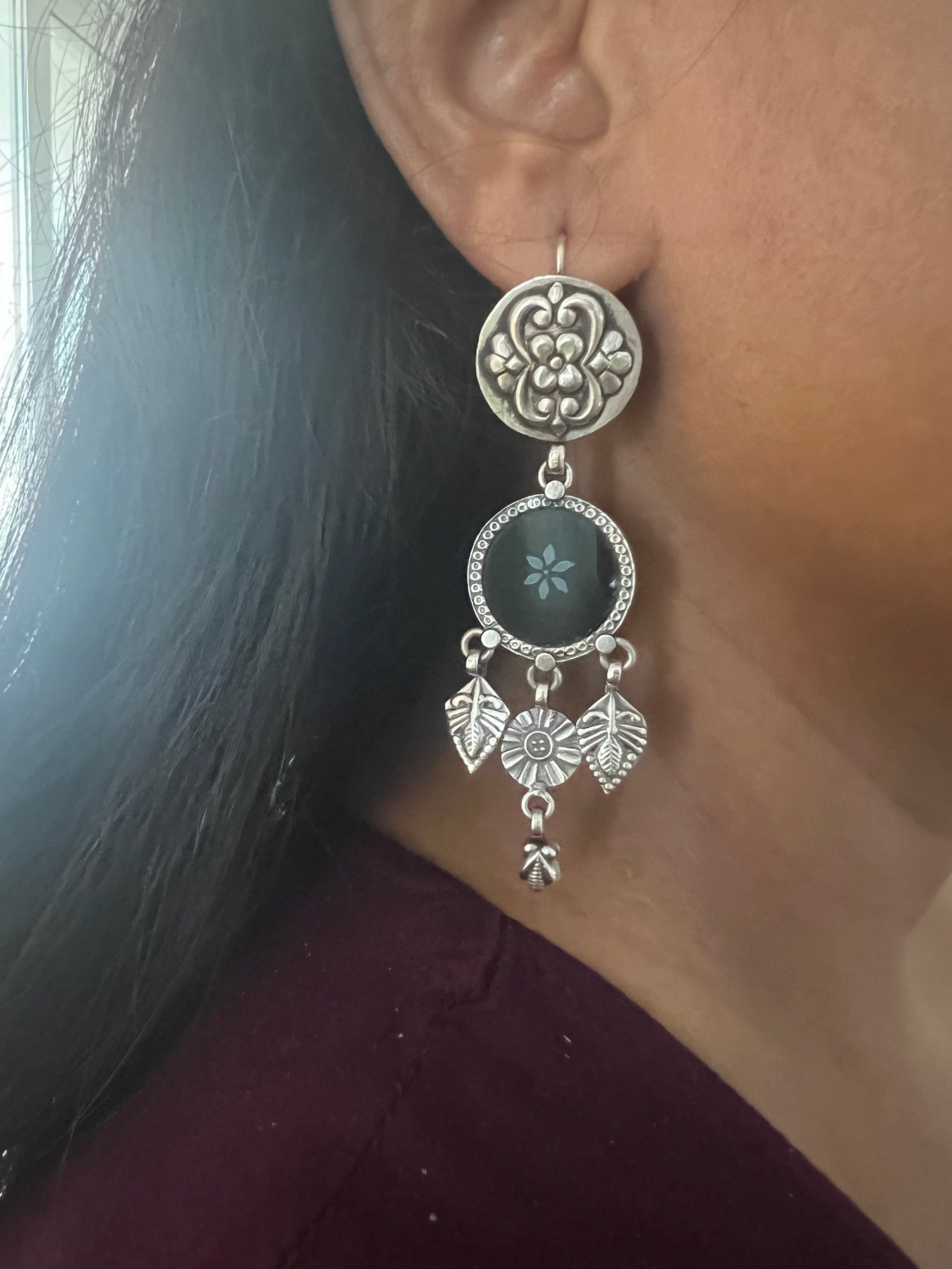Glass 925 Silver Earrings | SHIVKA | Hallmarked | 7x3 cm | 20g Pair | Ear Wire Closure | Elegant Gift Jewelry