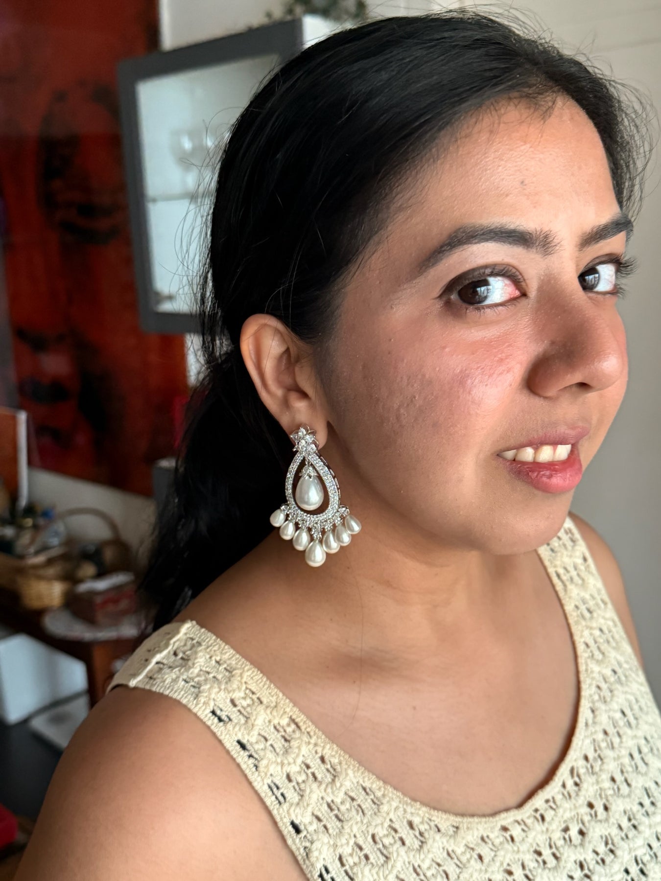 These graceful earrings blend tradition and elegance, making them the perfect statement piece for ethnic wear or fusion outfits. Sure to earn compliments every time you wear them!