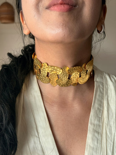 Bold Gold Tone Brass Choker | SHIVKA Statement Jewelry