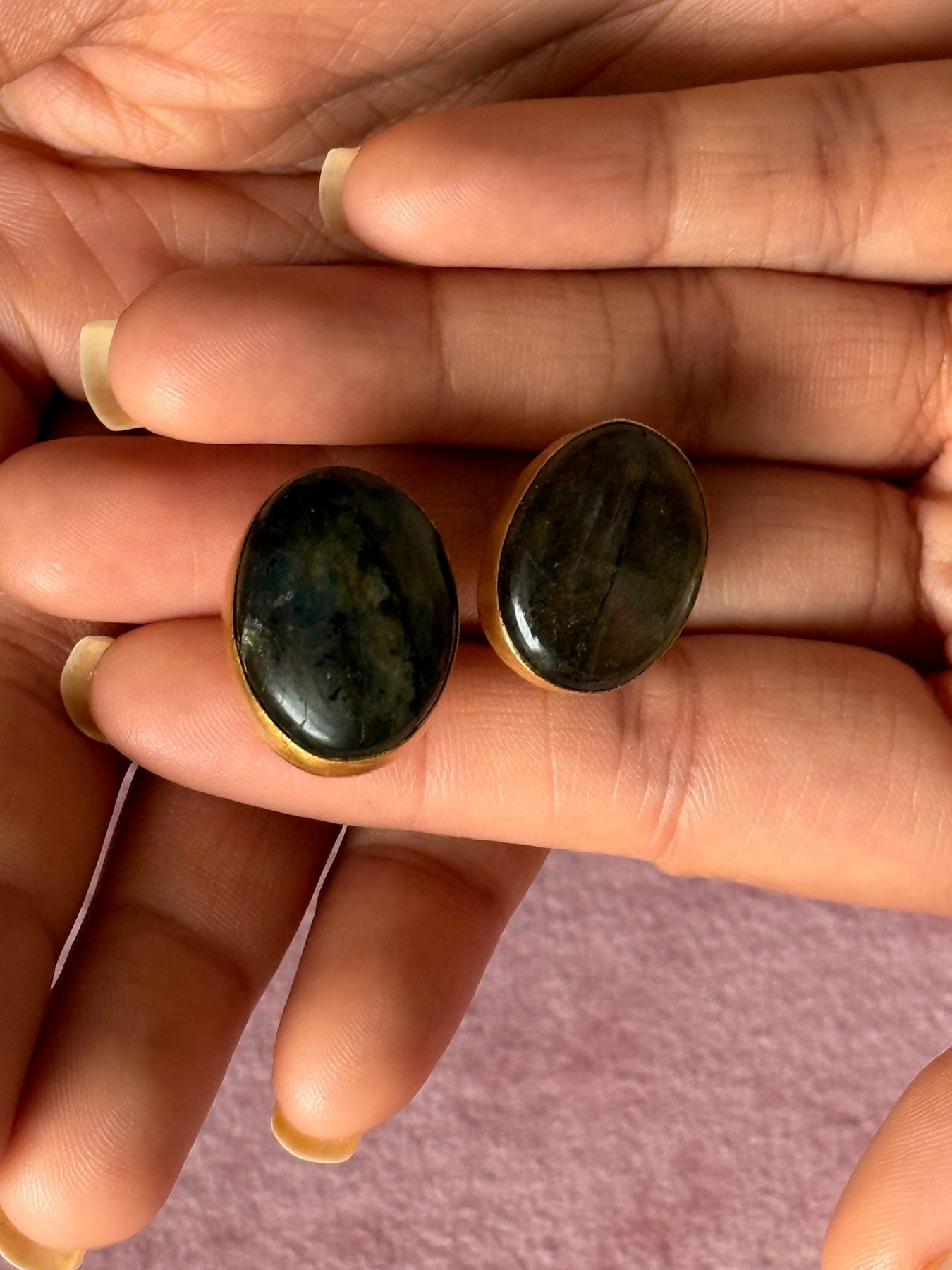 Design: Bold yet elegant studs with a natural gemstone center