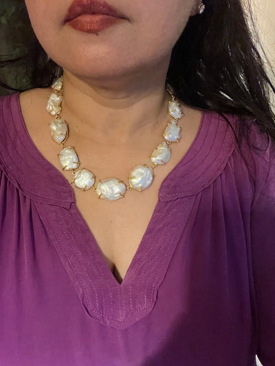 Handmade Necklace with Natural Baroque Pearls | Adjustable Gold Polish Short Necklace by SHIVKA