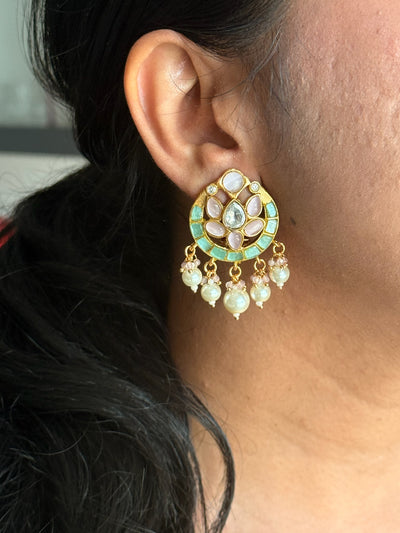925 Silver Jadau Kundan Earrings | SHIVKA Bridal Earrings