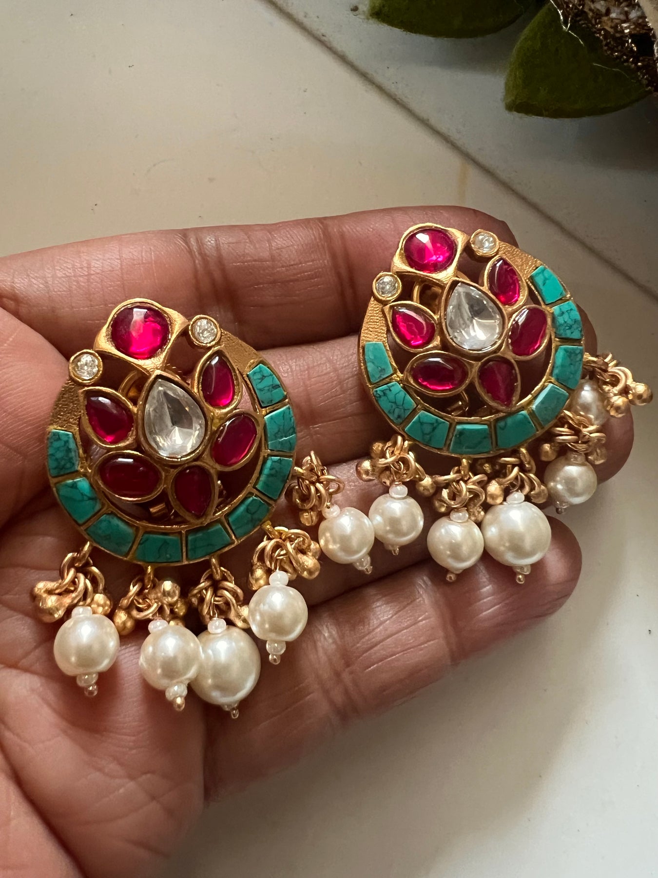 Materials: Brass, Copper, Natural Gemstones, Kempu Work