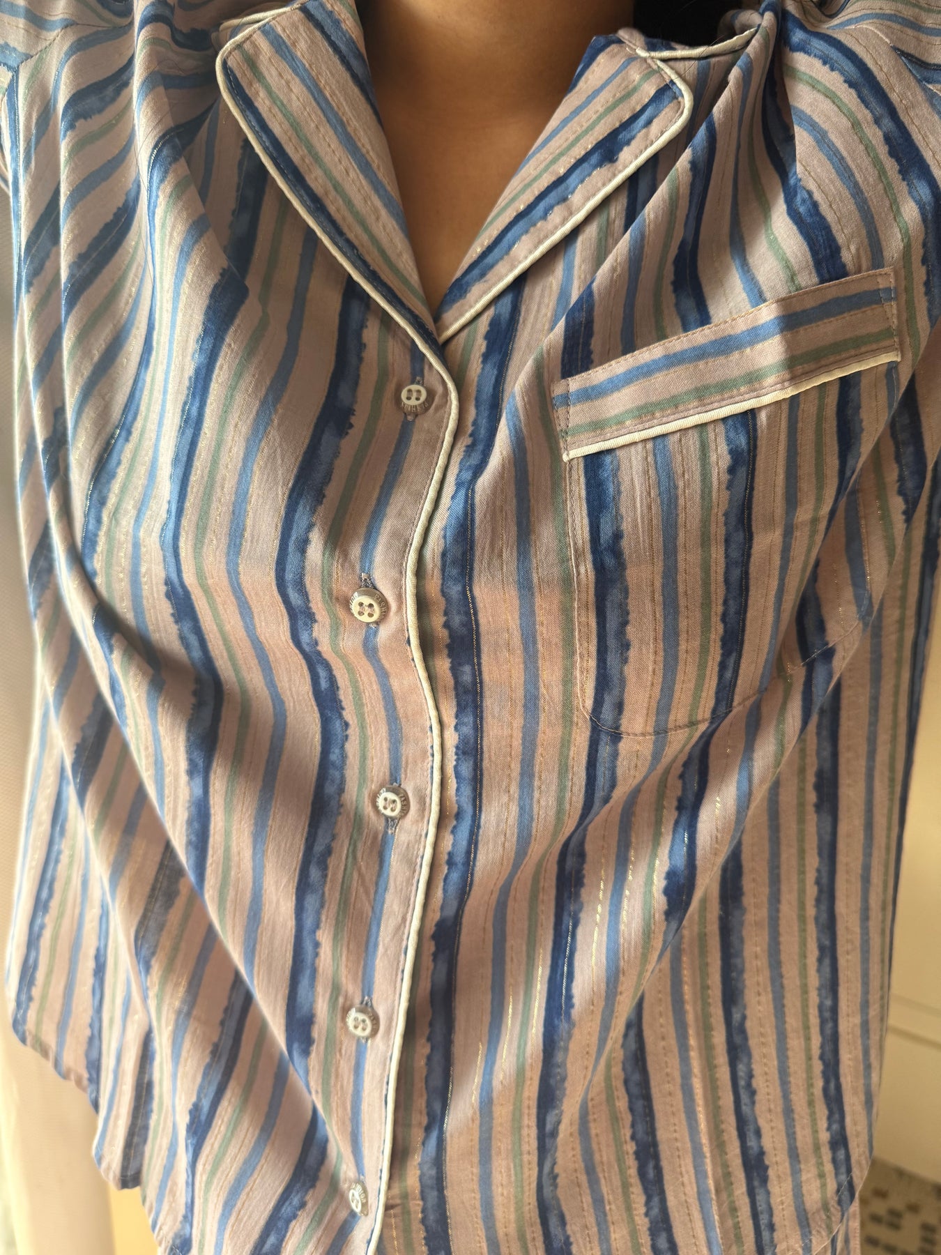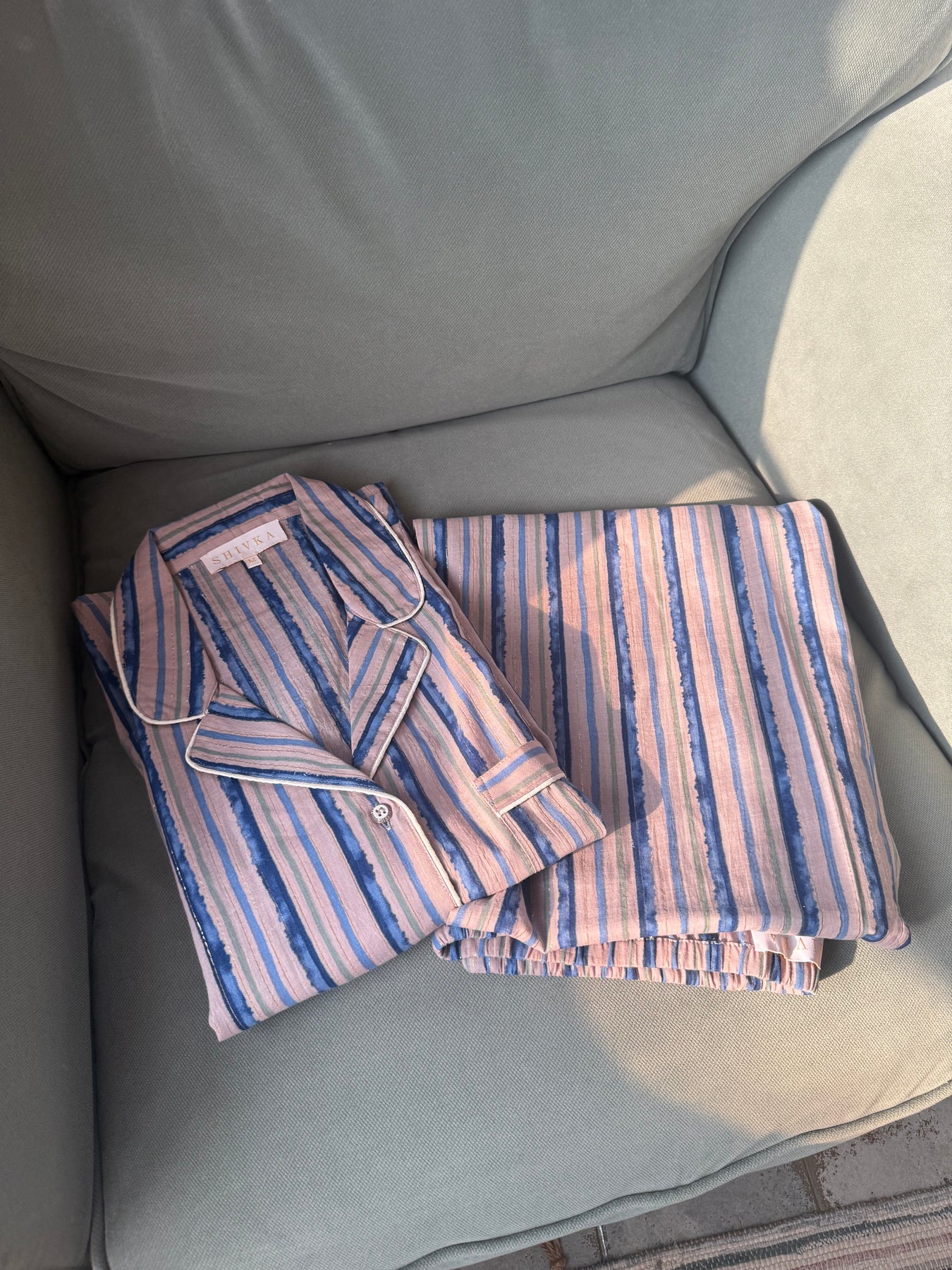 Striped Cotton Pajama Set, Indian Print Night Suit