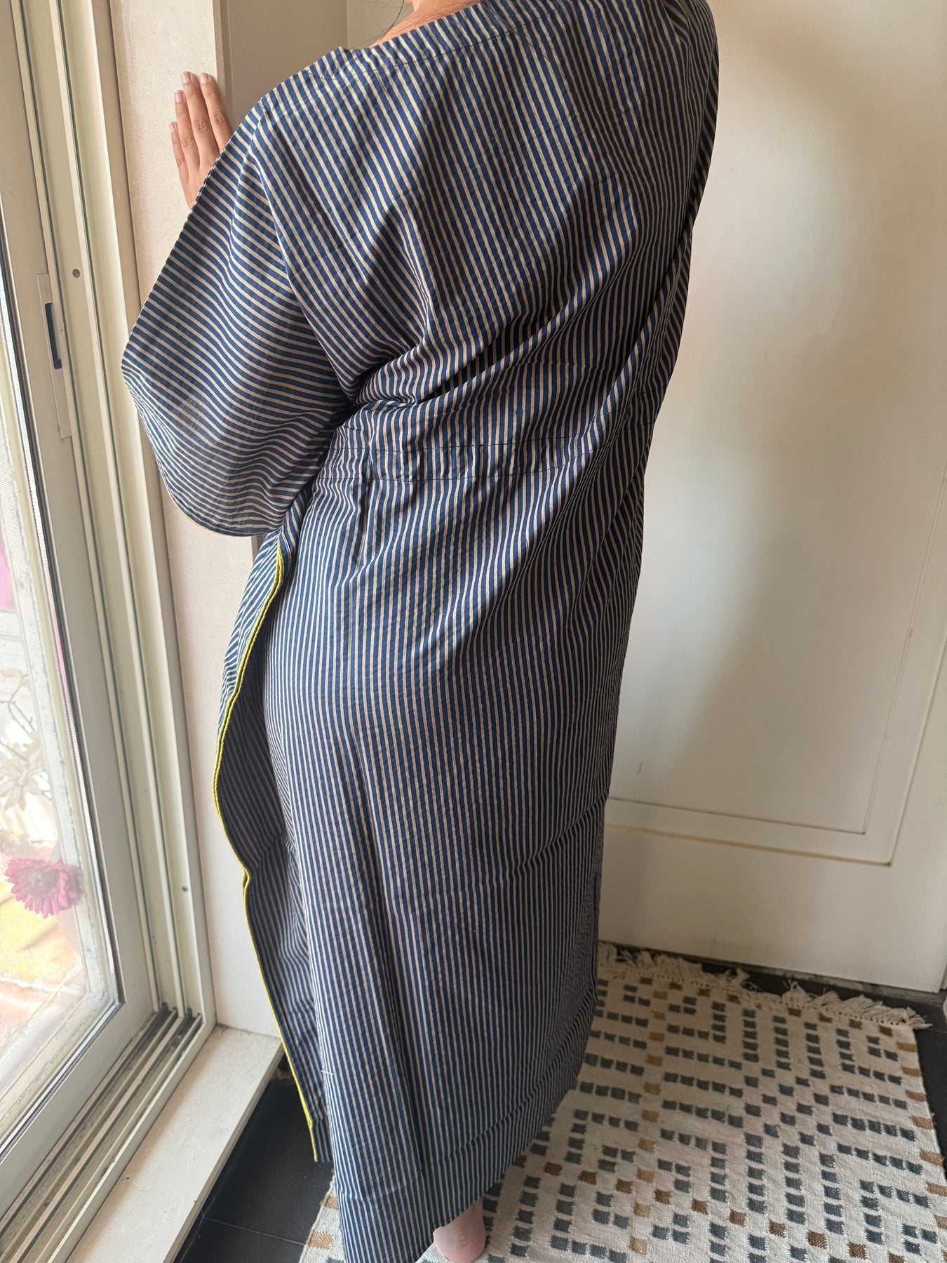 Lounge in style at home in this comfy cool Kaftan!! You will definitely fall in love with this elegant wear with a tie-up at the waist.