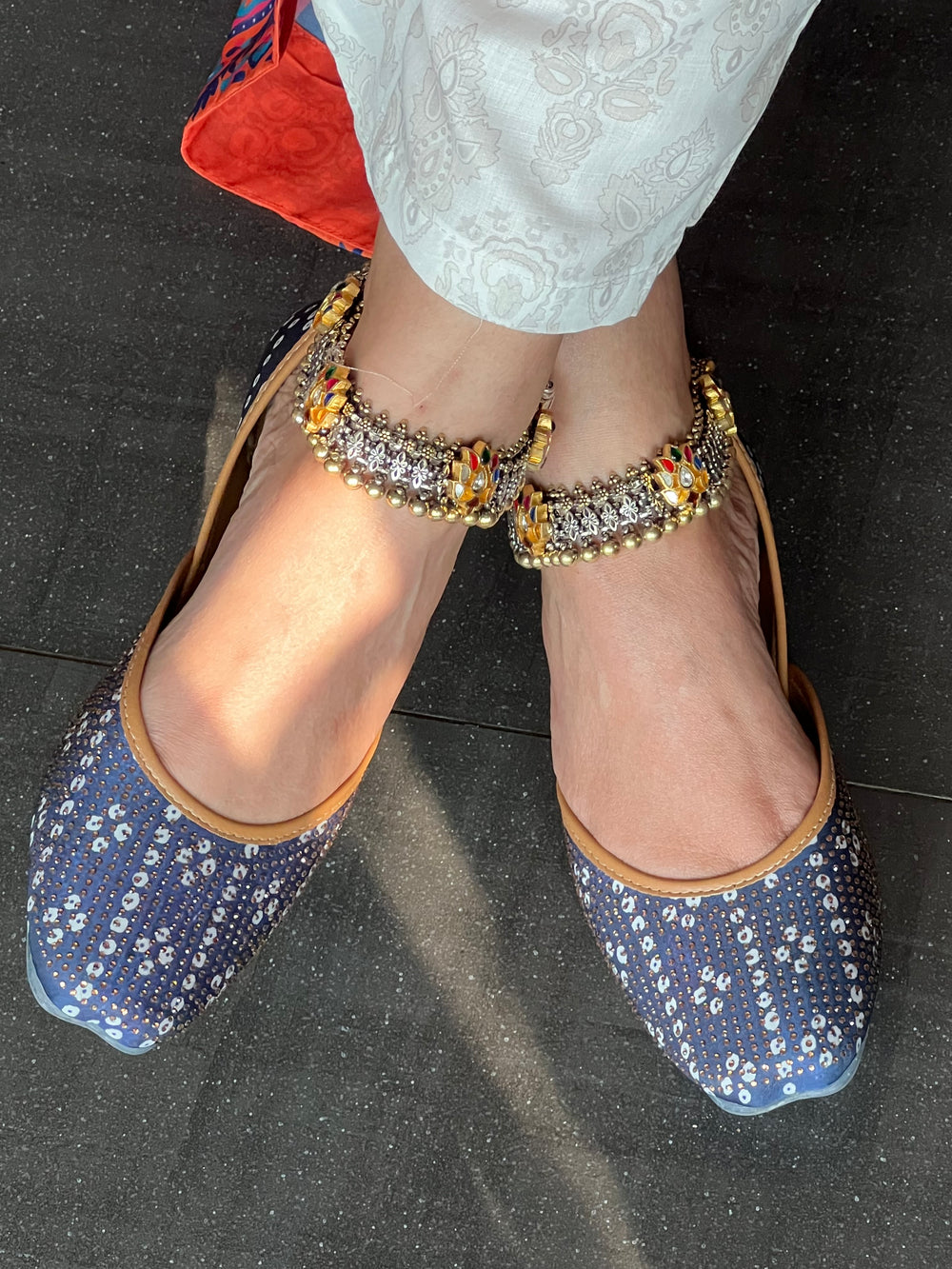 Handcrafted in Jaipur, these regal anklets are made with 92.5 pure silver and adorned with traditional Kundan work. Designed with a pull-push clasp and measuring 10.5 inches, this pair is a celebration of heritage, movement, and unmatched craftsmanship.