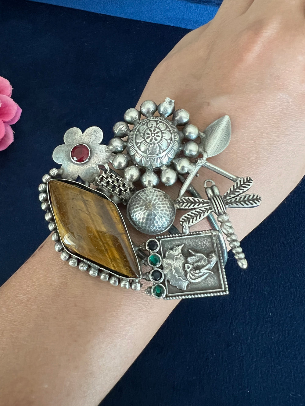 Elevate your casual outings with our exquisite fusion handcuff. Meticulously crafted from high-quality brass and adorned with stunning stones, this accessory effortlessly blends modern design with timeless elegance. Make a statement of style and sophistication. Size is adjustable. The weight of the cuff is 50 grams. It is ideal for size 2.4- 2.8 wrist size.