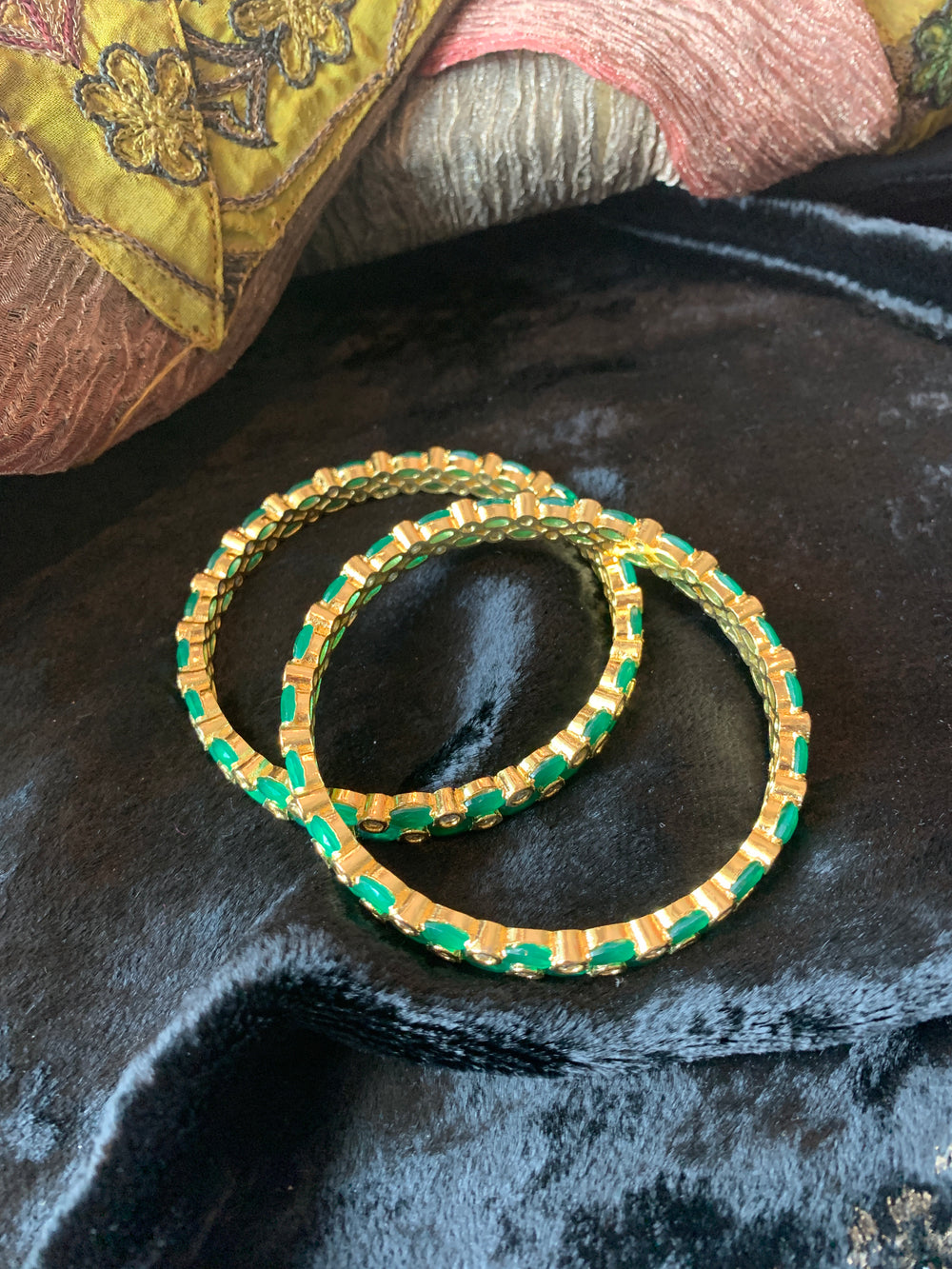 You will definitely fall in love with these beautiful pair of green stone bangles.