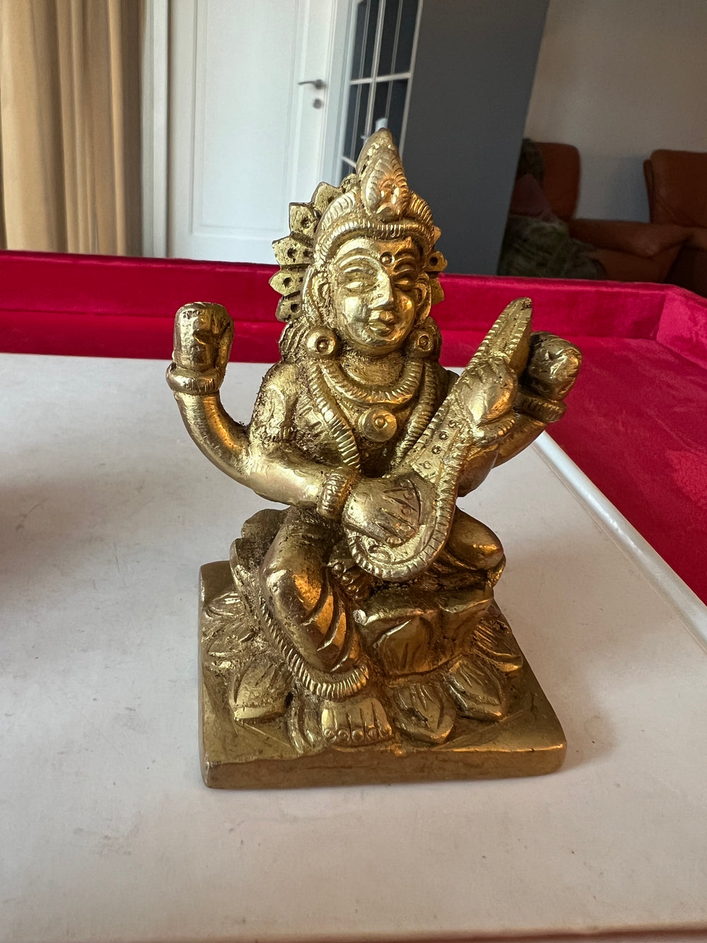 Antique Brass Saraswati Sculpture: Goddess of Wisdom