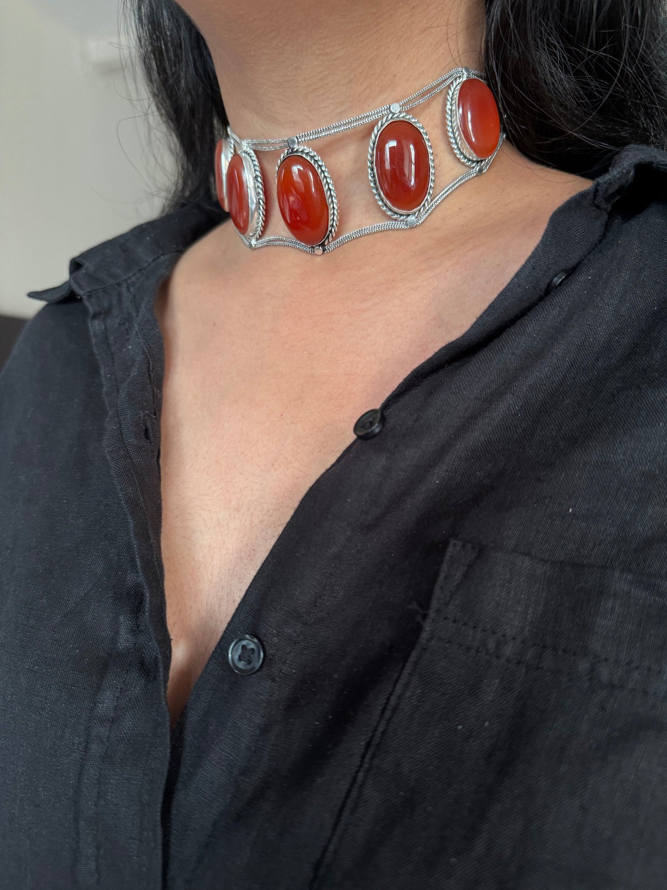 Statement Red Onyx Gemstone Choker / One-of-a-kind Jewelry/ Indian Choker