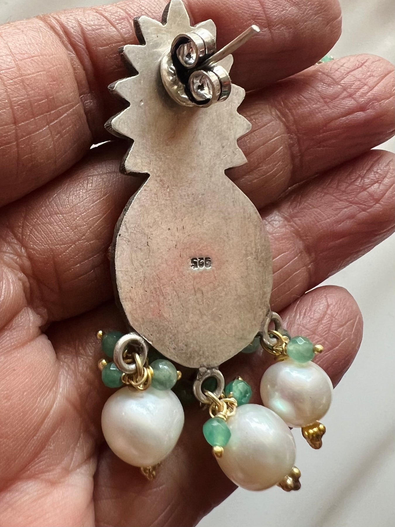 SHIVKA premium 925 silver hallmarked Kundan earrings in dual-tone (antique & gold) plating. Push-back closure. Size: 6 × 3 cm. Weight: 38 g per pair. A stunning festive designer piece that attracts many compliments.
