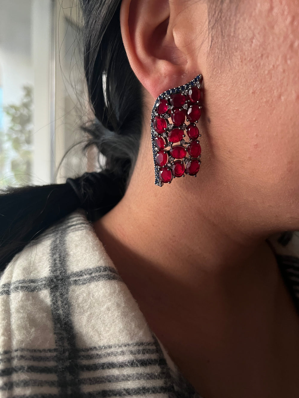 Weight: 30 grams per pair Dimensions: 5 cm (Length) × 2.5 cm (Breadth) Closure Type: Secure push-back closure Rhodium Polish. These timeless earrings are perfect for making a statement at parties, festive gatherings, and celebrations. Add a touch of refined luxury to your jewelry collection today!
