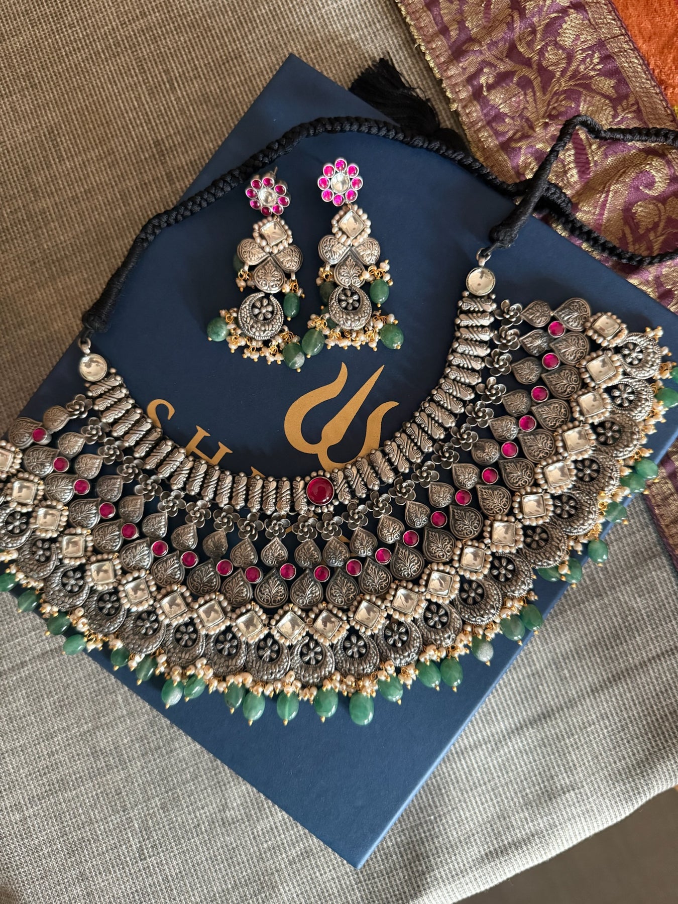Perfect for festive occasions, weddings, and celebrations, this handcrafted SHIVKA set is sure to attract lots of compliments wherever you go.