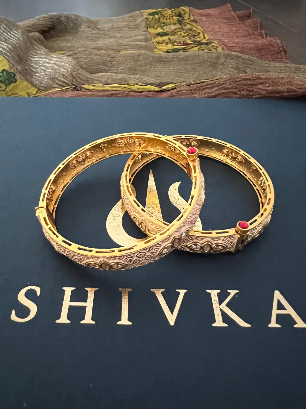 The eye-soothing colour of these bangles is a mark of royal simplicity. These can be comfortably paired with anything, either worn on separate hands or the same hand.