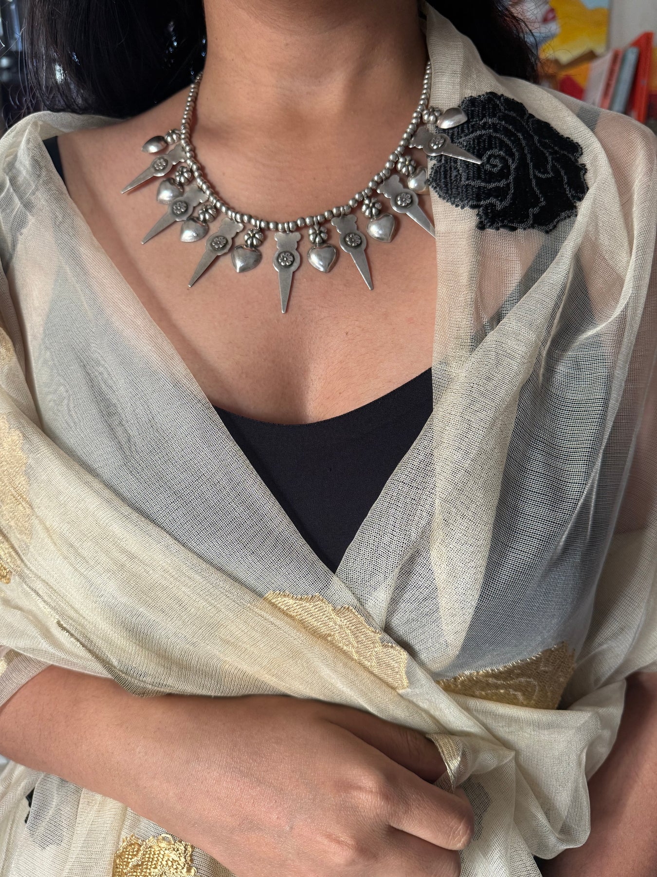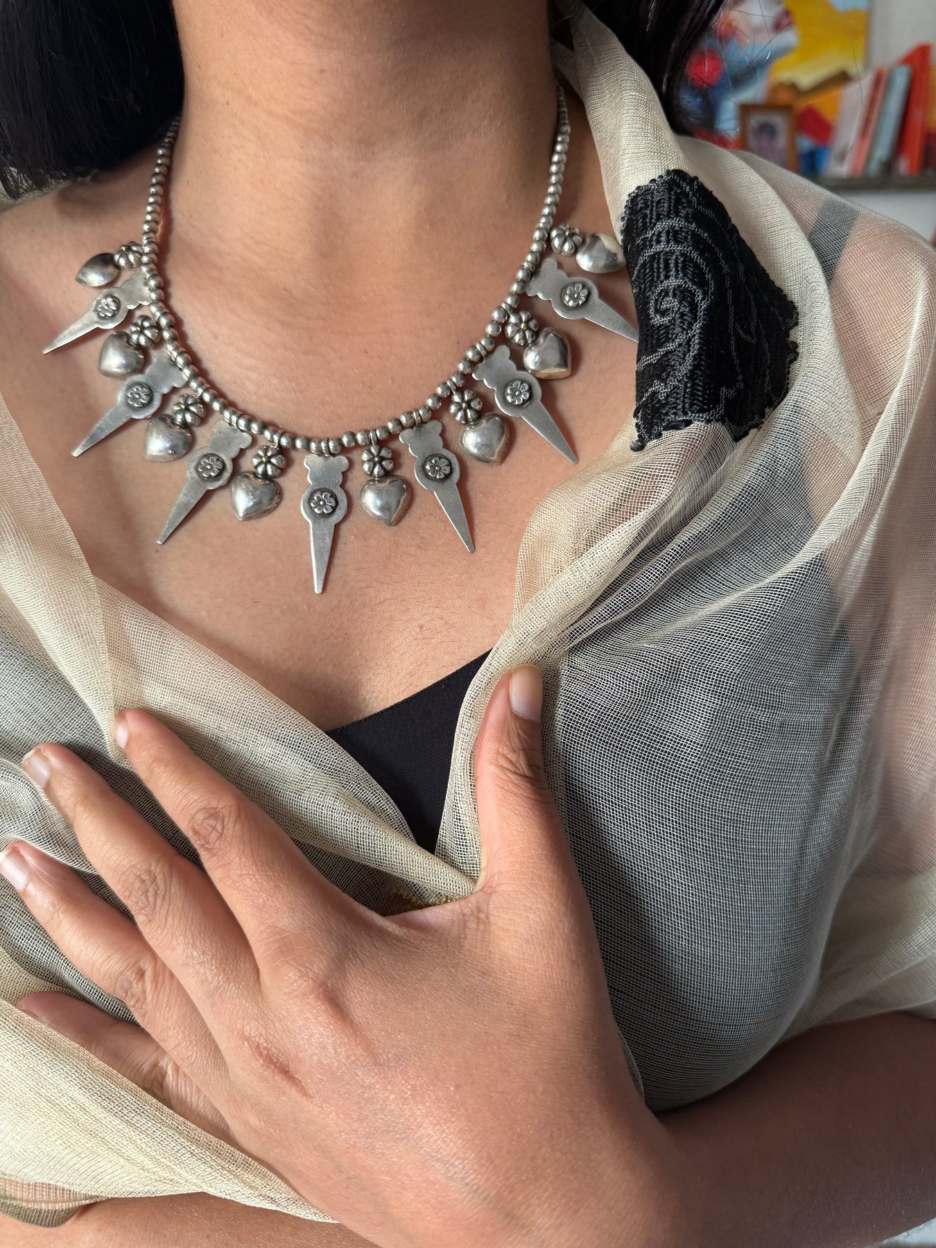 A pure 925 silver tribal collar necklace designed to make a bold and elegant statement.