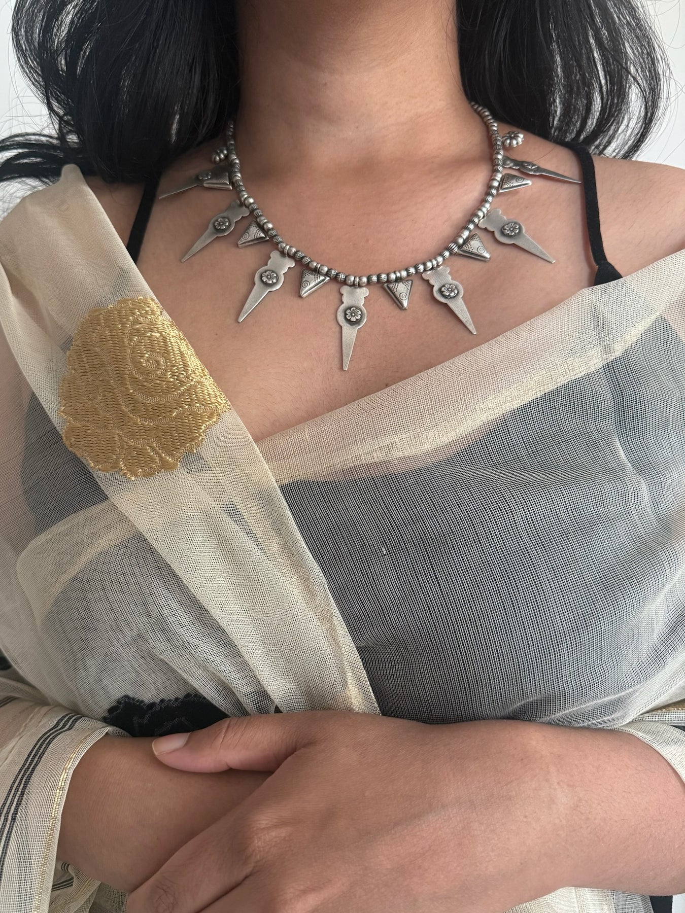 A pure 925 silver tribal collar necklace designed to make a bold and elegant statement.