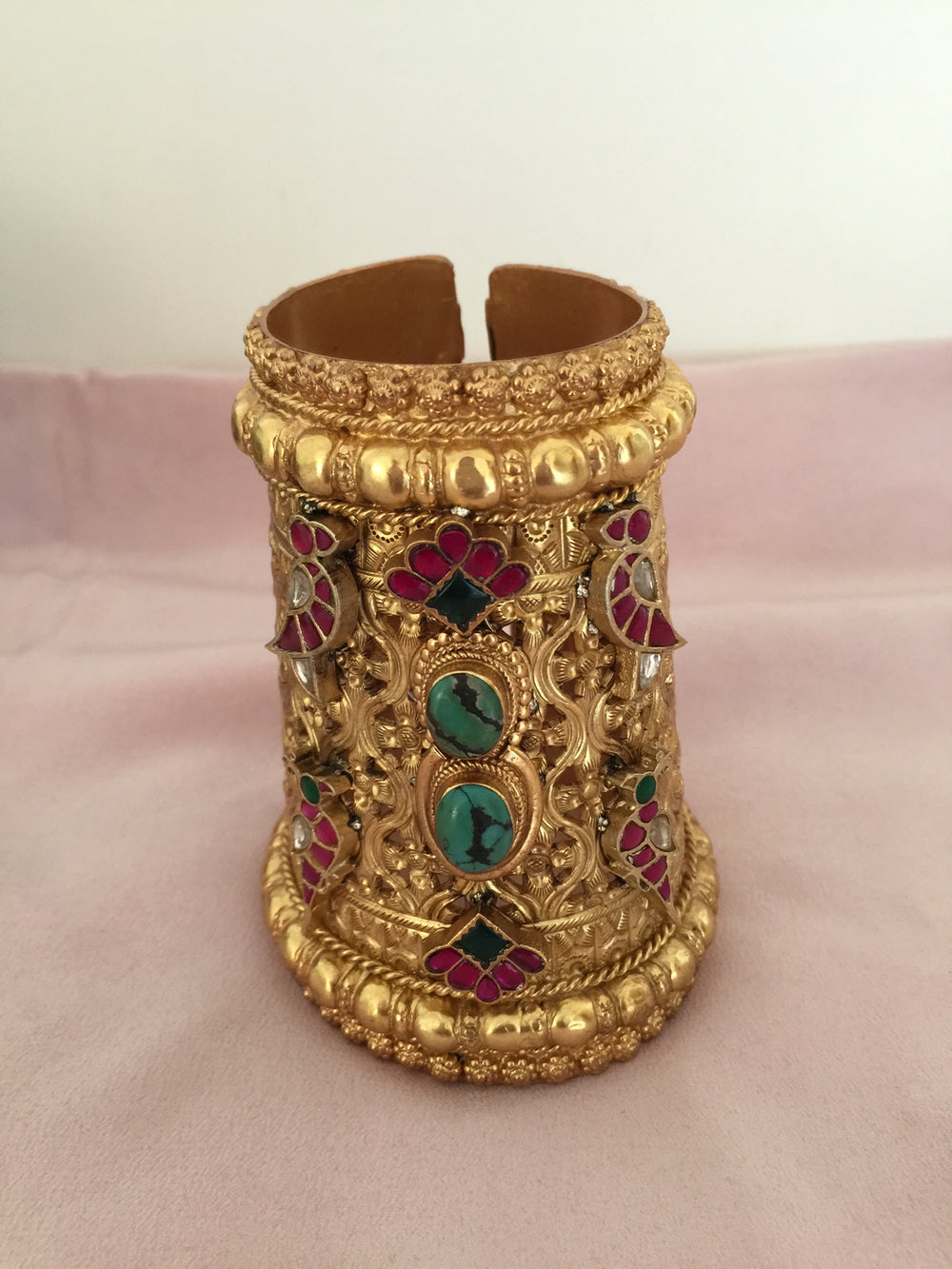 This exquisite 'Handcuff' is an exclusive SHIVKA creation, embodying our commitment to unique designs and exceptional artistry. Adorn your wrist with this stunning piece and carry a touch of royal legacy with you.